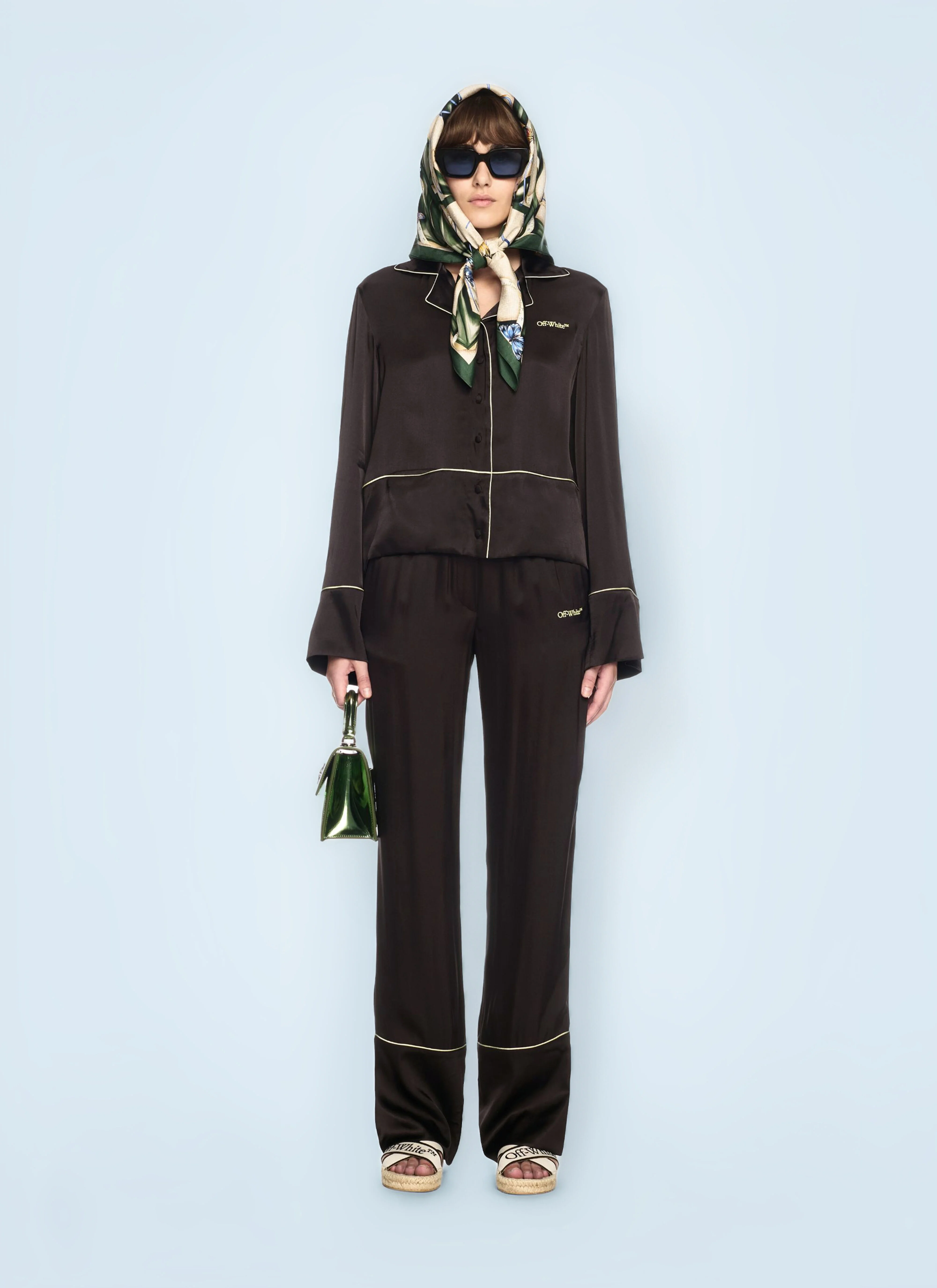 Satin shirt with piping trims and embroidered logo motif. - Classic collar - Front button fastening - Long sleeves - Front logo embroidery - Straight hem - 75% Acetate, 25% Silk. Dry clean - Color: Black - Code: OWGE028S25FAB0016G14