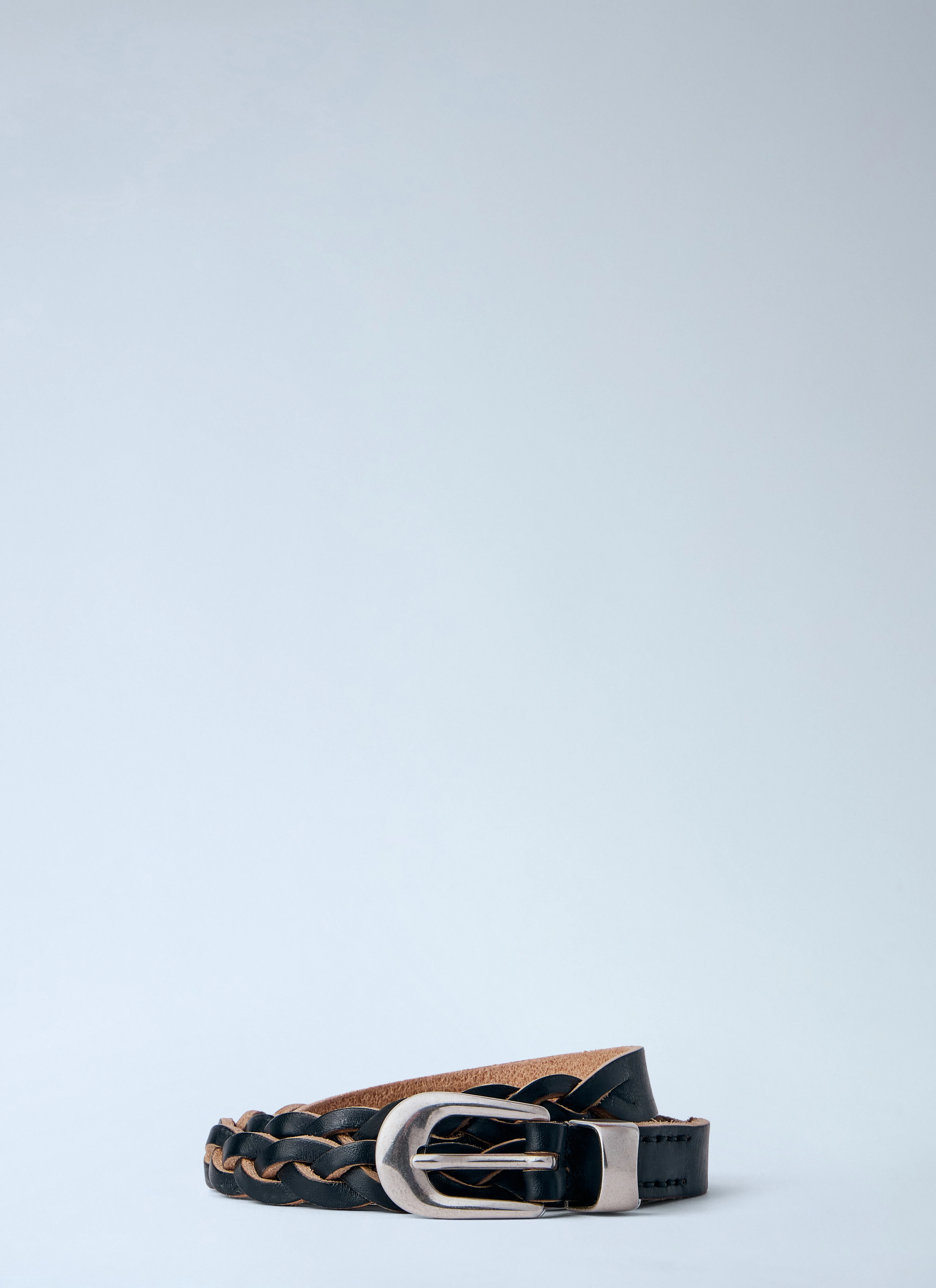 Belt in braided leather construction with metal buckle. - Braided leather - Metal buckle fastening - Contrast stitching - 100% Leather - Color: Black - Code: A42382BB