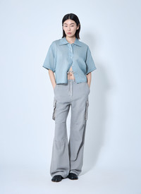 Shirt with curved hem. - Spread collar - Front button fastening - Short sleeves - Curved hem - 84% Viscose, 16% Silk. Hand wash - Color: Blue - Code: W2252BG