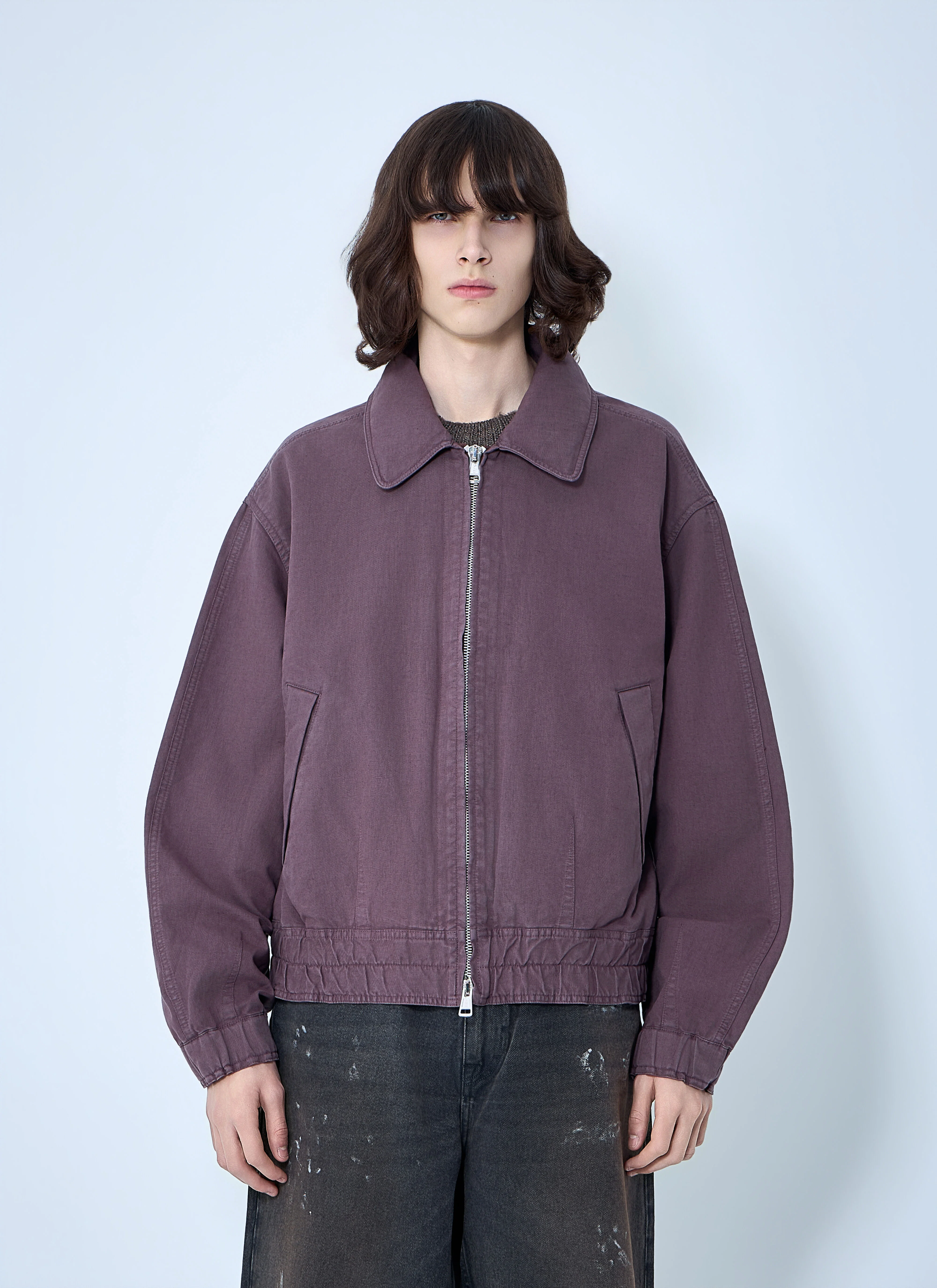 Zip-front jacket in structured fabric with point collar. - Point collar - Front zip fastening - Two side pockets - 72% Cotton 28% Linen - Color: Purple - Code: M2261CPC