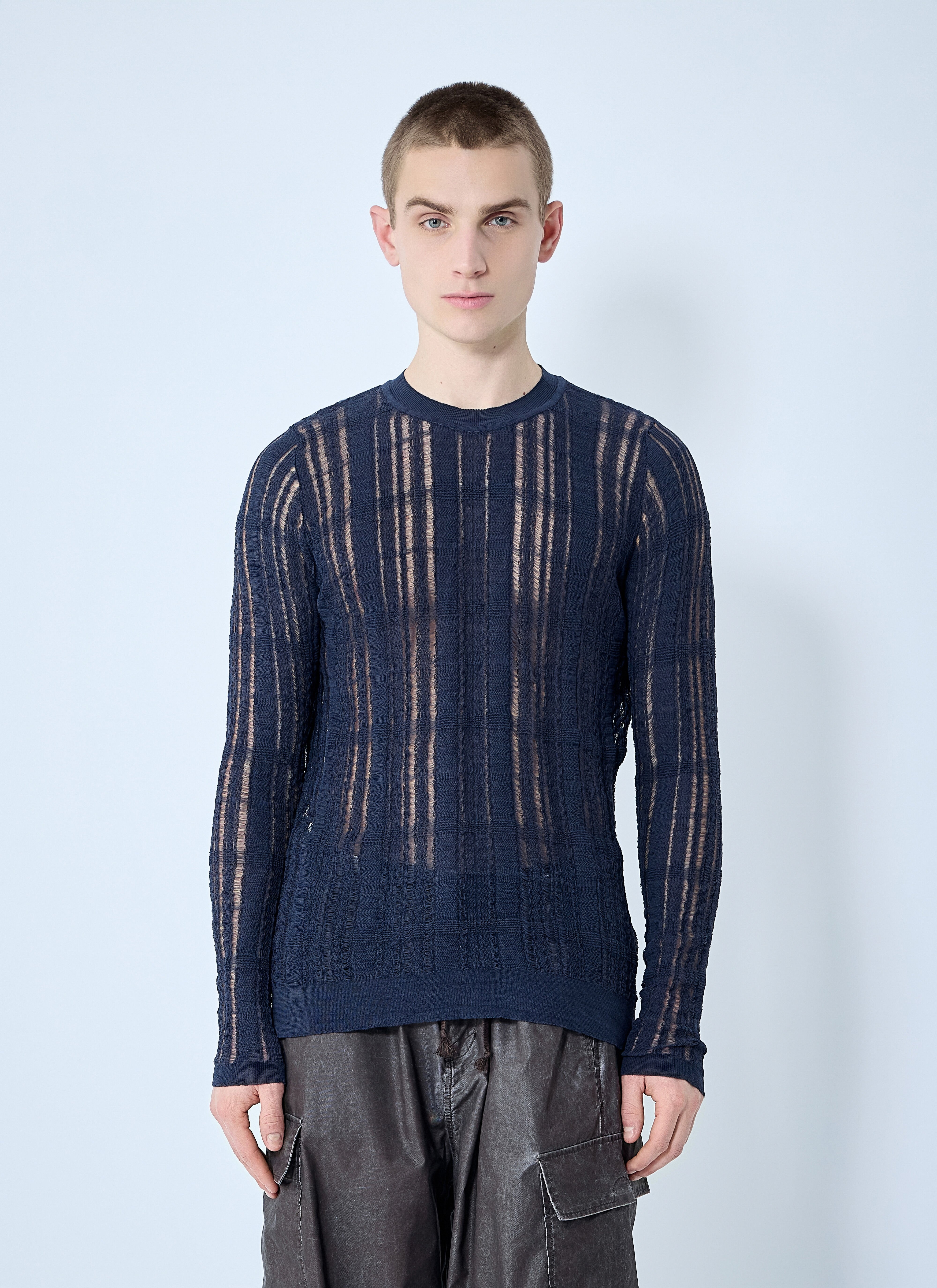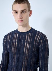 Crewneck sweater in laddered knit construction. - Crewneck - Long sleeves - Rib trims - 78% Cotton, 22% Polyamide. Hand wash - Color: Blue - Code: M2253FW