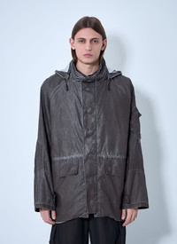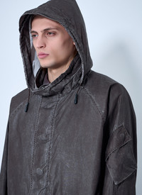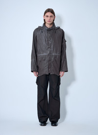 Horizon jacket in washed nylon. - Stand collar - Packable drawstring hood - Front snap-button and zip fastening - Long sleeves - Flap pockets at front - Adjustable drawstring at waist - Patch pocket at sleeve - Adjustable cuffs - 100% Nylon. Dry clean - Color: Brown - Code: M2251HAB