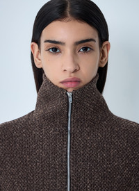 Knit sweater with a zip-up fastening. - Classic collar - Front two-way zip fastening - Long sleeves - Rib trims - 100% Technical Blend Fabrication. Hand wash - Color: Brown - Code: W4256SB