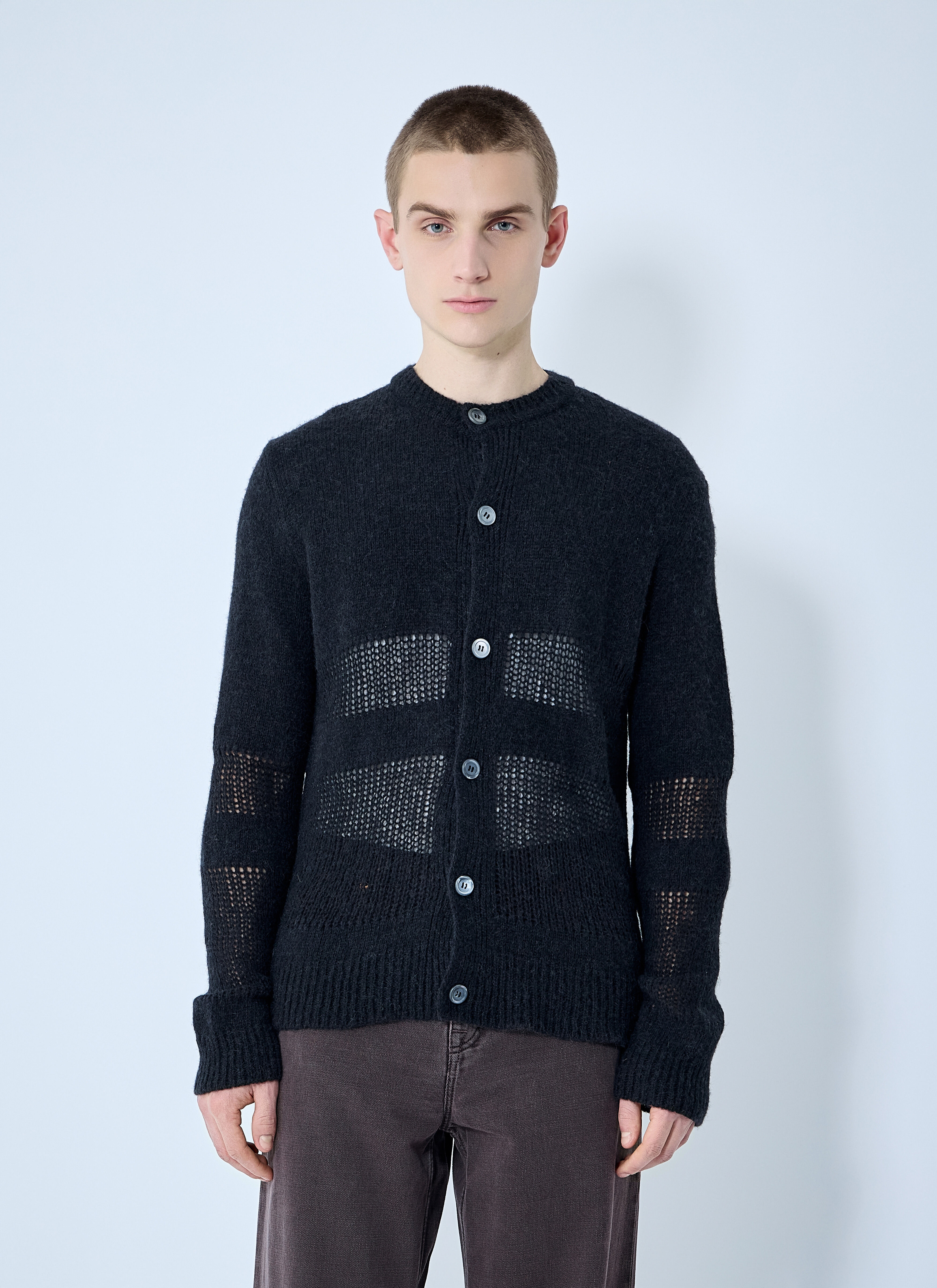 Contrast knit cardigan. - Crewneck - Front button fastening - Long sleeves - Rib trims - 45% Cotton, 55% Wool. Hand wash - Color: Black - Code: M2253OL