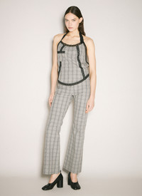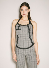 Pinafore top in check motif with lace trims. - Scoop neck - Self-tie straps at rear - Chest patch pocket - Lace trims - Open rear - 88% Cotton, 6% Linen, 6% Ramie. Hand wash - Color: Grey - Code: W4244PV