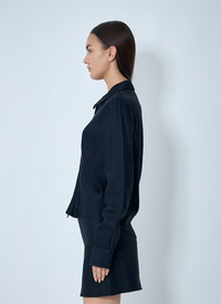 Classic shirt in linen-blend. - Classic collar - Front zip fastening - Long sleeves - Button-fastening cuffs - 48% Viscose, 48% Linen, 3% Elastane, 1% Polyester. Dry clean - Color: Black - Code: W4252SN
