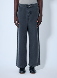 Jeans in straight-leg construction with adjustable belt. - Mid-rise - Top-button and button-fly fastening - Intergral belt at waist - Side slip pockets - Rear welt pocket - 56% Cotton, 44% Linen. Dry clean - Color: Black - Code: M2254SB