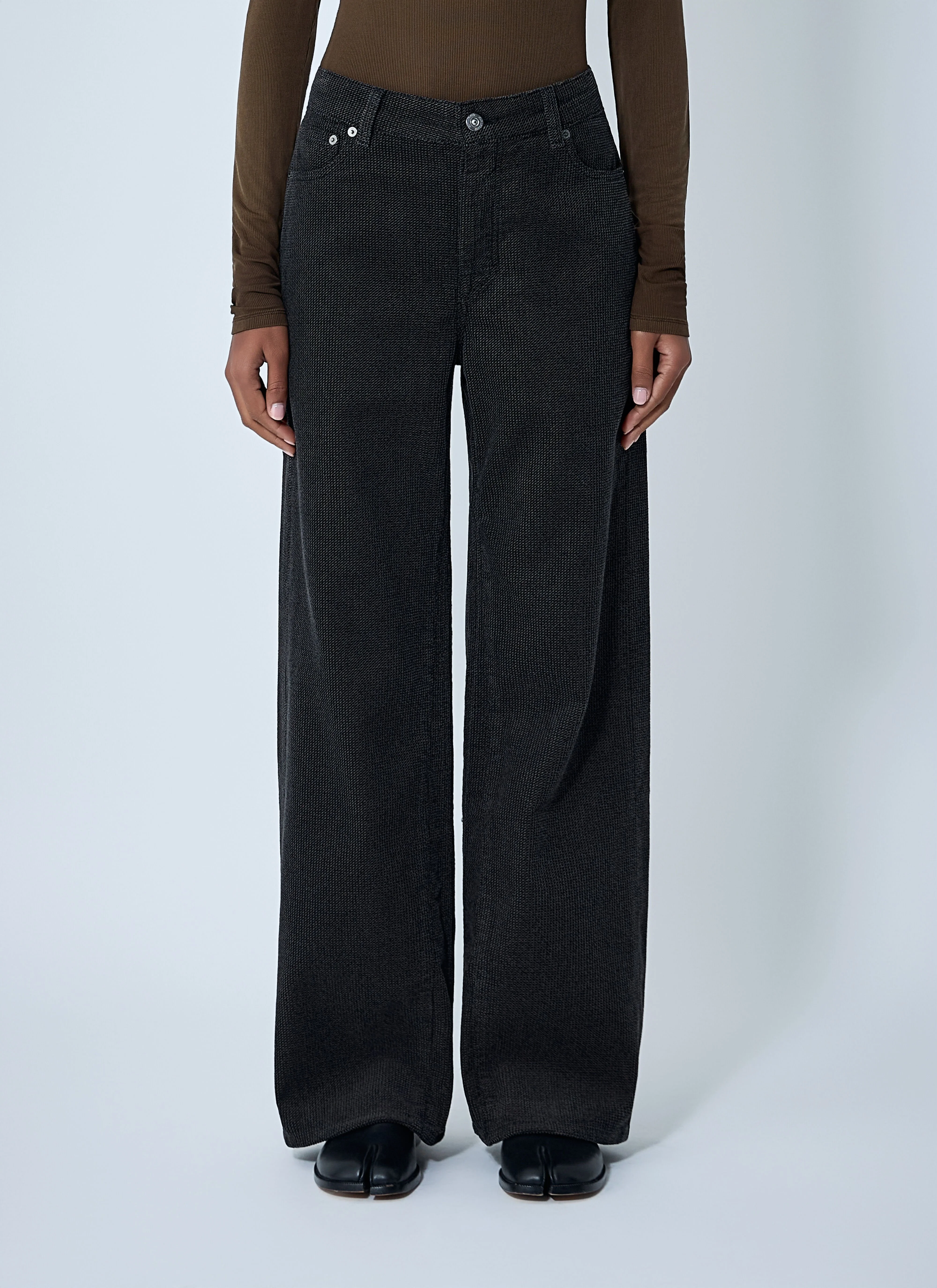 High-rise wide-leg jeans in textured weave. - High-rise - Button and zip-fly fastening - Belt loops - Five pockets - 100% Cotton. Dry clean - Color: Brown - Code: W4255TD