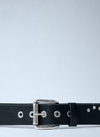 Leather belt with metal detailing. - Metal buckle fastening - Punched holes - Belt loop - 100% Leather - Color: Black - Code: A4258VS