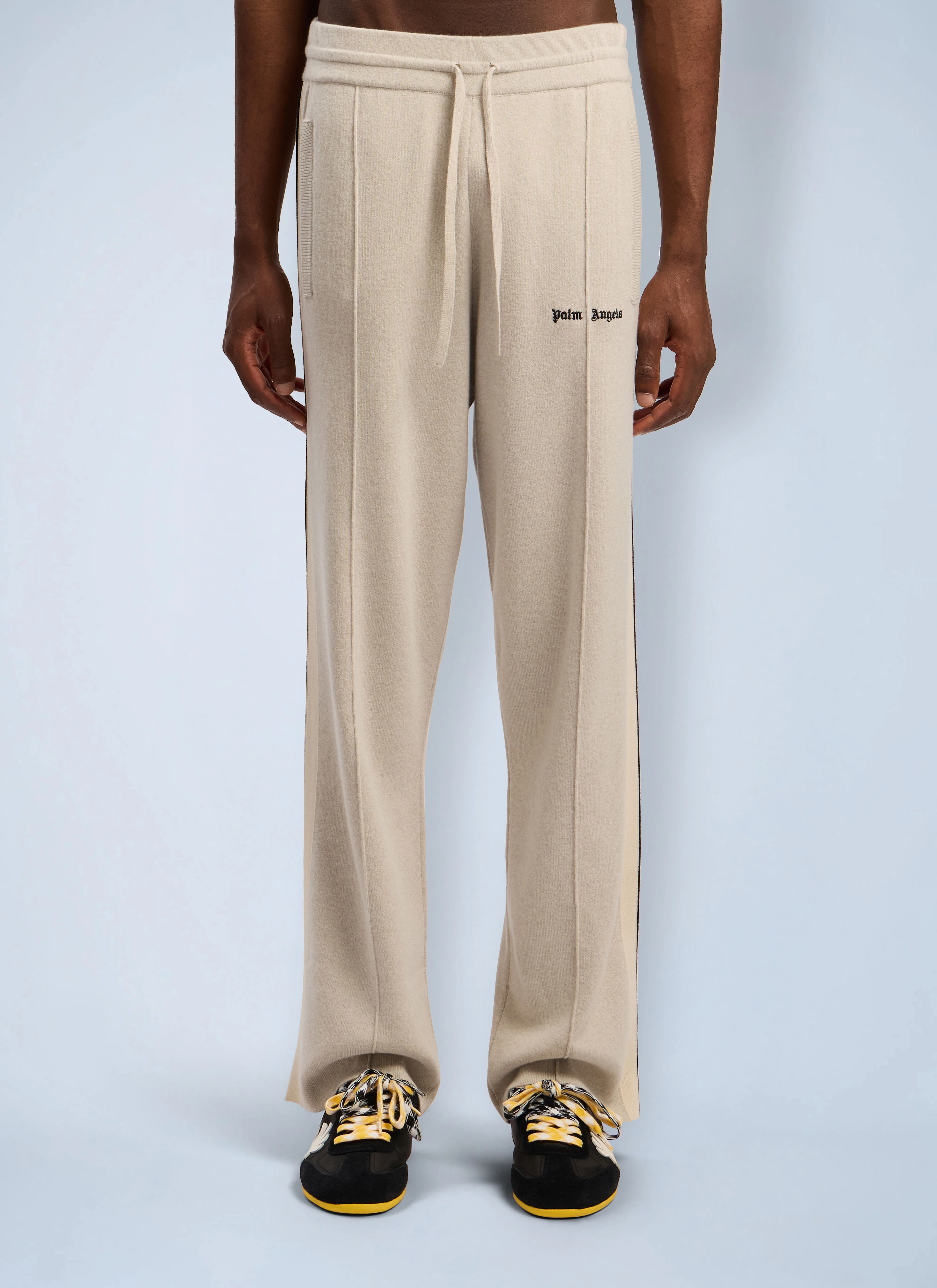 Track pants with logo. - Elastic waistband with drawstring - Side stripe detailing - Front pockets - Debossed logo at front - Straight-leg design - 40% Wool, 30% Viscose, 20% Polyamide, 10% Cashmere. Dry clean - Color: Beige - Code: PMHG023F25KNI0016110