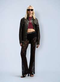 Lace pants with logo waistband. - Lace fabric - Elastic logo waistband - 91% Polyester, 9% Elastan. Lining: 100% Polyester. Dry clean - Color: Black - Code: PWCA15EF25FAB0011010