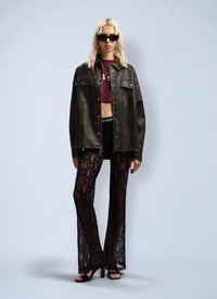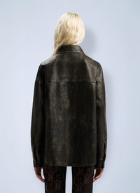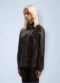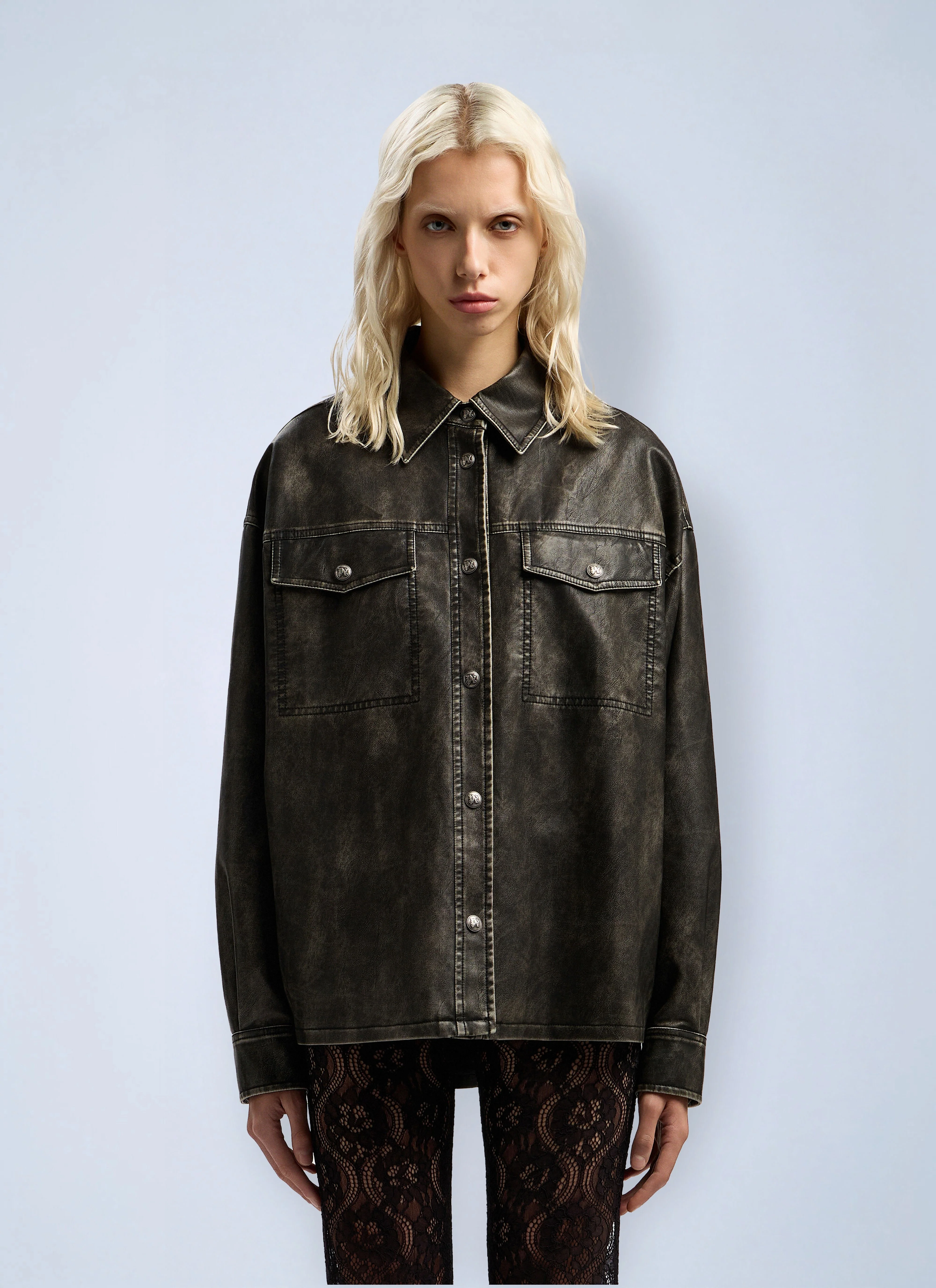 Coated overshirt with curved logo. - Coated fabric - Curved logo at rear - Structured collar - Long sleeves - Front button fastening - Front flap chest pockets - Buttoned cuffs - 68% Polyurethane, 27% Viscose, 5% Other fibres. Lining: 100% Viscose. Dry clean - Color: Grey - Code: PWJE009F25FAB0010710