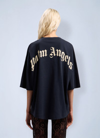 Oversized cotton t-shirt with curved logo at collar and back. - Oversized fit - Curved logo at collar and back - Cotton construction - Drop shoulders - Short sleeves - 100% Cotton. Trim: 100% Cotton. Dry clean - Color: Dark Blue - Code: PWAA07DF25JER0014903