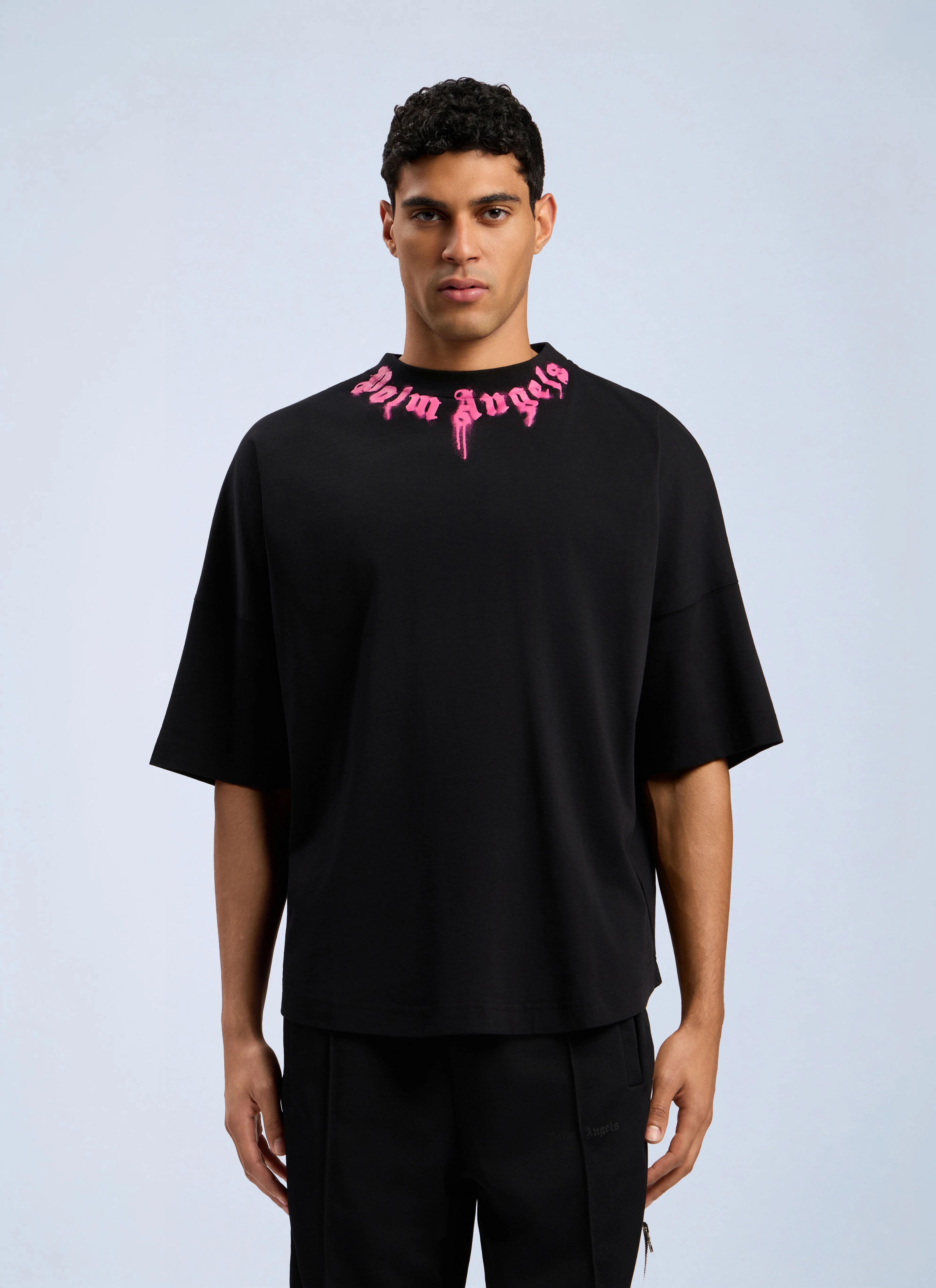 Logo motif T-shirt in cotton jersey. - Crewneck - Short sleeves - Logo motif - 100% Cotton. Trim: 100% Cotton. Dry clean - Color: Black - Code: PMAA10BF25JER0061032
