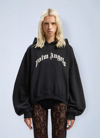 Cropped hoodie with curved logo. - Hooded neckline - Cropped relaxed fit - Long sleeves with dropped - 100% Polyester. Contrast: 100% Cotton. Trim: 95% Cotton, 5% Elastan. Dry clean - Color: Black - Code: PWBB076F25FLE0061003