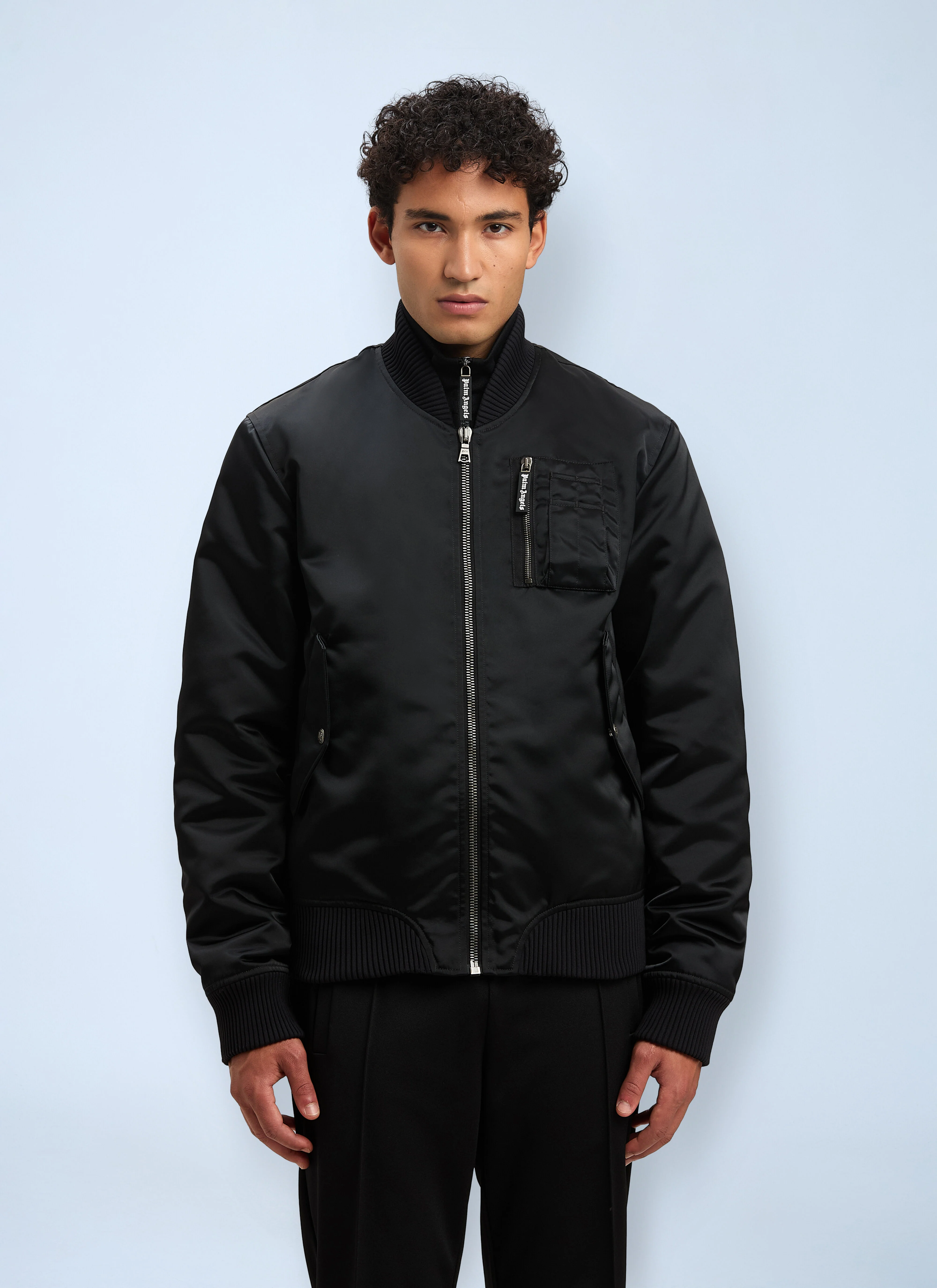 Bomber jacket with rear logo motif. - Crewneck - Front zip fastening - Long sleeves - Multiple pockets - Rear logo print - Rib trims - 100% Technical Fabrication Blend. Dry clean - Color: Black - Code: PMEH033S25FAB0011010