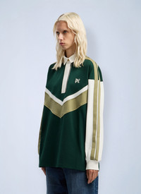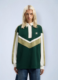 Long-sleeve colorblock polo shirt with monogram logo. - Classic collar - Front button fastening - Long sleeves - Logo motifs - 100% Cotton. Lining: 100% Cotton. Dry clean - Color: Dark Green - Code: PWGC011F25FAB0015203