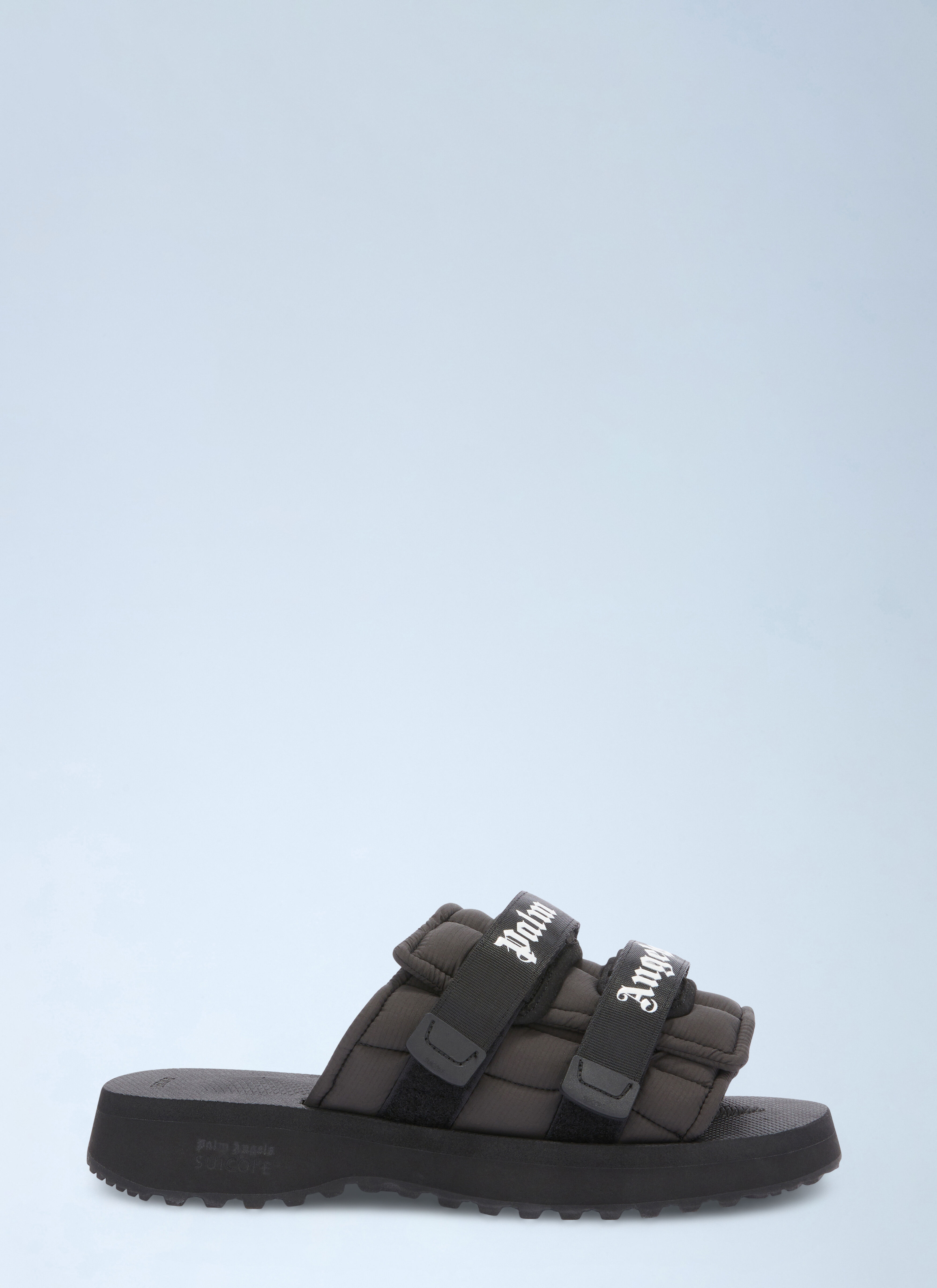 Padded Moto-P slides with logo print. - Open toe - Adjustable straps at top - Front logo motif - Flat sole - 100% Technical Fabrication Blend - Color: Black - Code: PMIH015S25FAB0011010