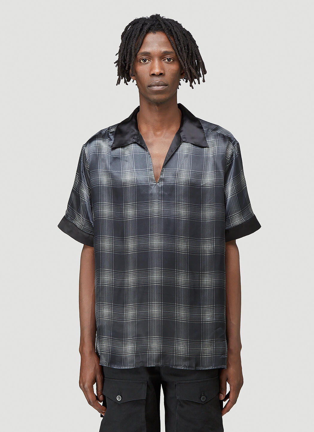 - Cupro in a satin weave - V-neck - Spread collar - Short sleeves - All-over check motif - 100% Cupro. Dry cean. - Color: Black - Code: PHSS21 S10 CU001 CUPRO SATIN PLAID