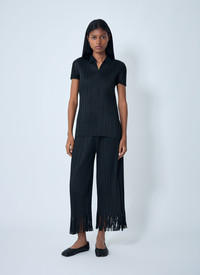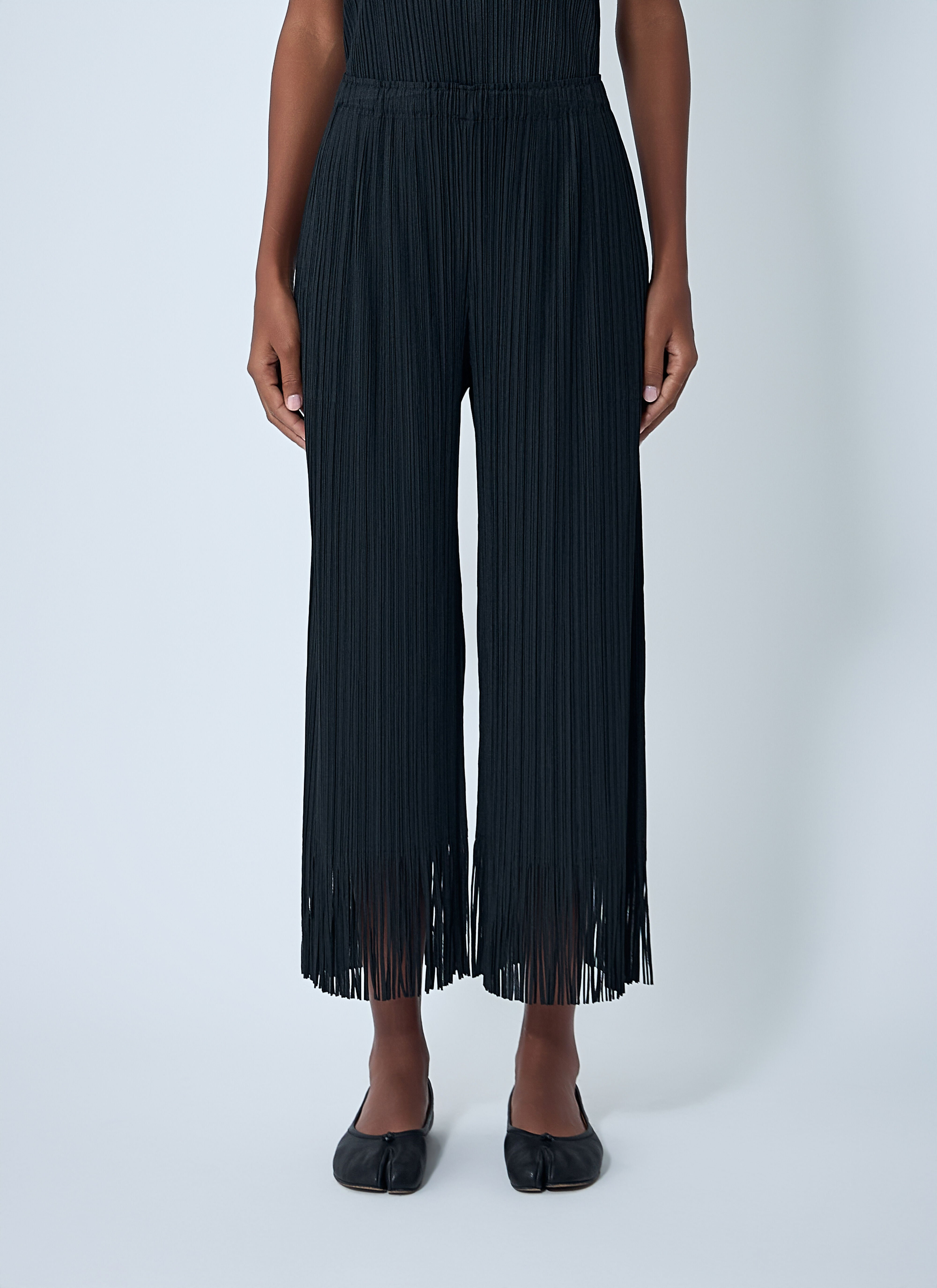 Elasticated pants in pleated constructions with fringe hem. - Mid rise - Elasticated waistband - Side slip pockets - 100% Technical Blend Fabrication. Dry clean - Color: Black - Code: PP58JF453-15