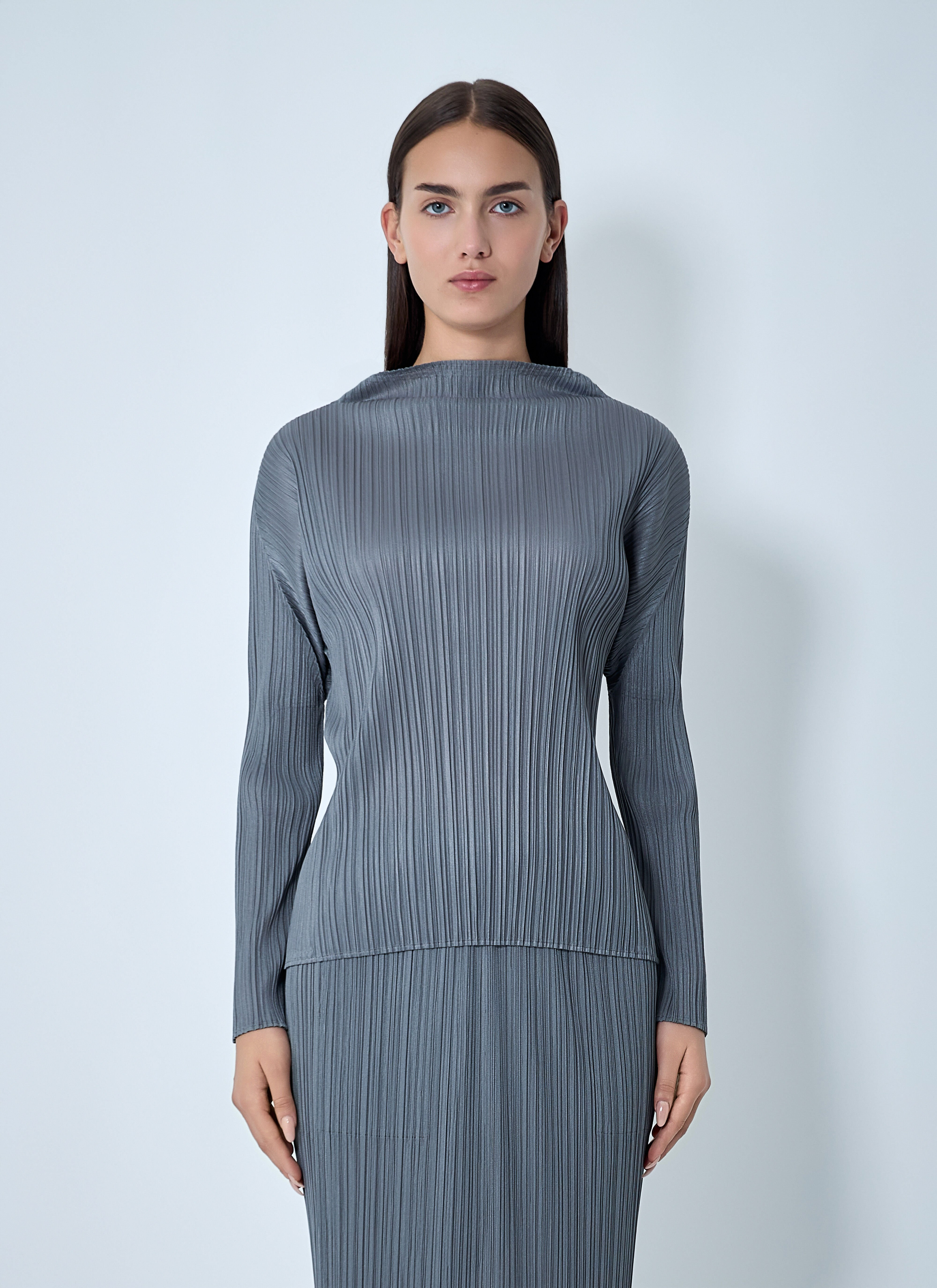 Long sleeve top in pleated construction. - Stand collar - Long sleeves - Straight hem - 100% Technical Blend Fabrication. Dry clean - Color: Grey - Code: PP58JK104-12