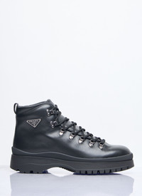 Brixxen boots in smooth-grain leather. - Round toe - Lace-up fastening - Logo embossed motif at tongue - Side logo plaque - Embossed logo motif at reat - Made in Italy - 100% Leather - Color: Black - Code: 2TE201 070 F0002