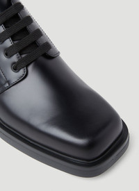 Leather lace-up shoes with square toe. - Square toe - Lace-up fastening - Stacked heel - Debossed logo at footbed - Made in Italy - 100% Leather - Color: Black - Code: 2EG412 B4L F0002