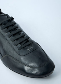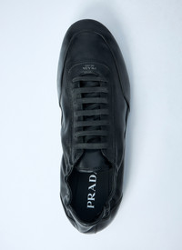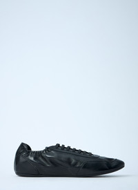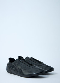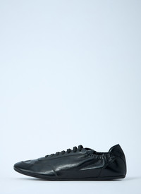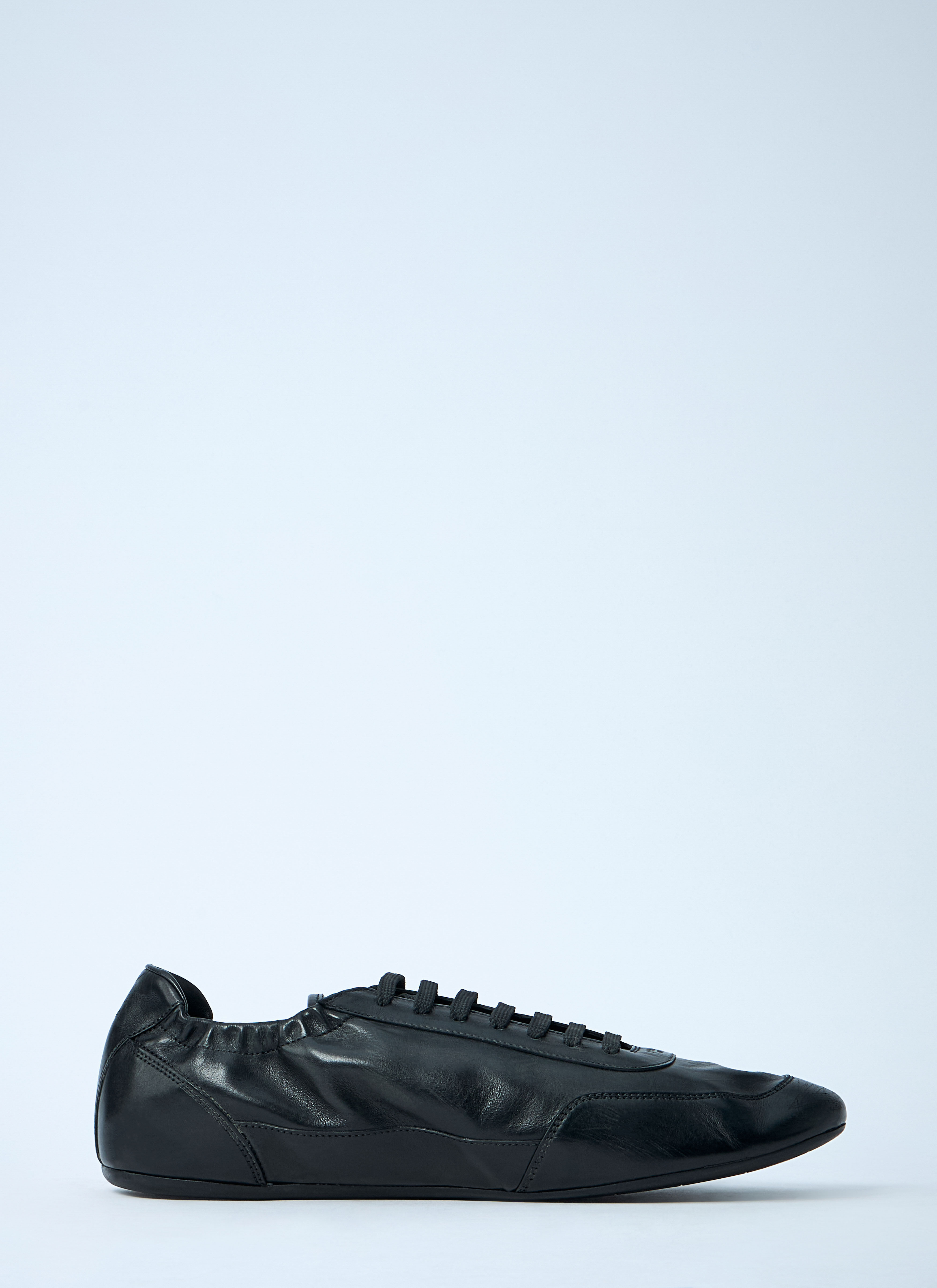 Leather collapse elasticized sneakers in smooth-grain finish. - Round toe - Lace-up fastening - Debossed logo - Elasticated cuff - Made in Italy - 100% Leather - Color: Black - Code: 2EG479 7V6 F0002