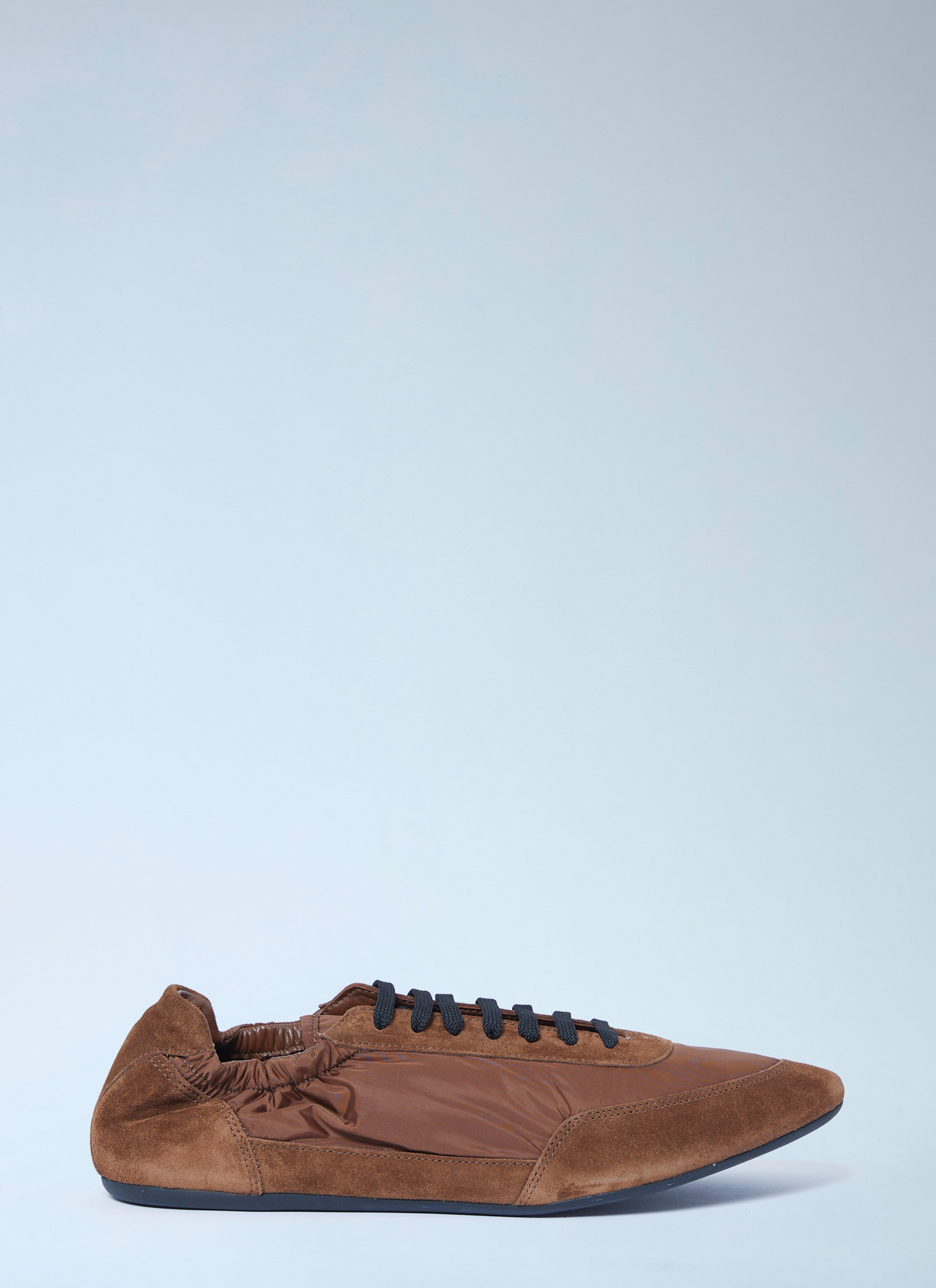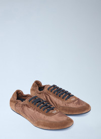 Collapse elasticized sneakers with re-nylon and suede panels. - Round toe - Lace-up fastening - Debossed logo - Elasticated cuff - Made in Italy - 100% Recycled polyamide. Contrast: 100% Leather - Color: Brown - Code: 2EG479 D7C F0BW5