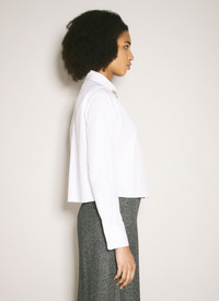 Cotton poplin shirt with crystal embroideries at collar. - Classic collar - Front button fastening - Long sleeves - Button-fastening cuffs - Cropped construction - Made in Italy - 100% Cotton. Hand wash - Color: White - Code: P472HR 155W F0009
