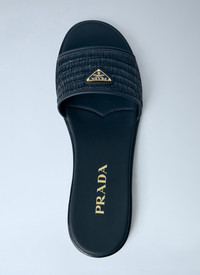 Open-toe woven leather slide sandals. - Open toe - Woven leather upper - Flat sole - 100% Viscose - Color: Black - Code: 1XX758 2ACS F0002