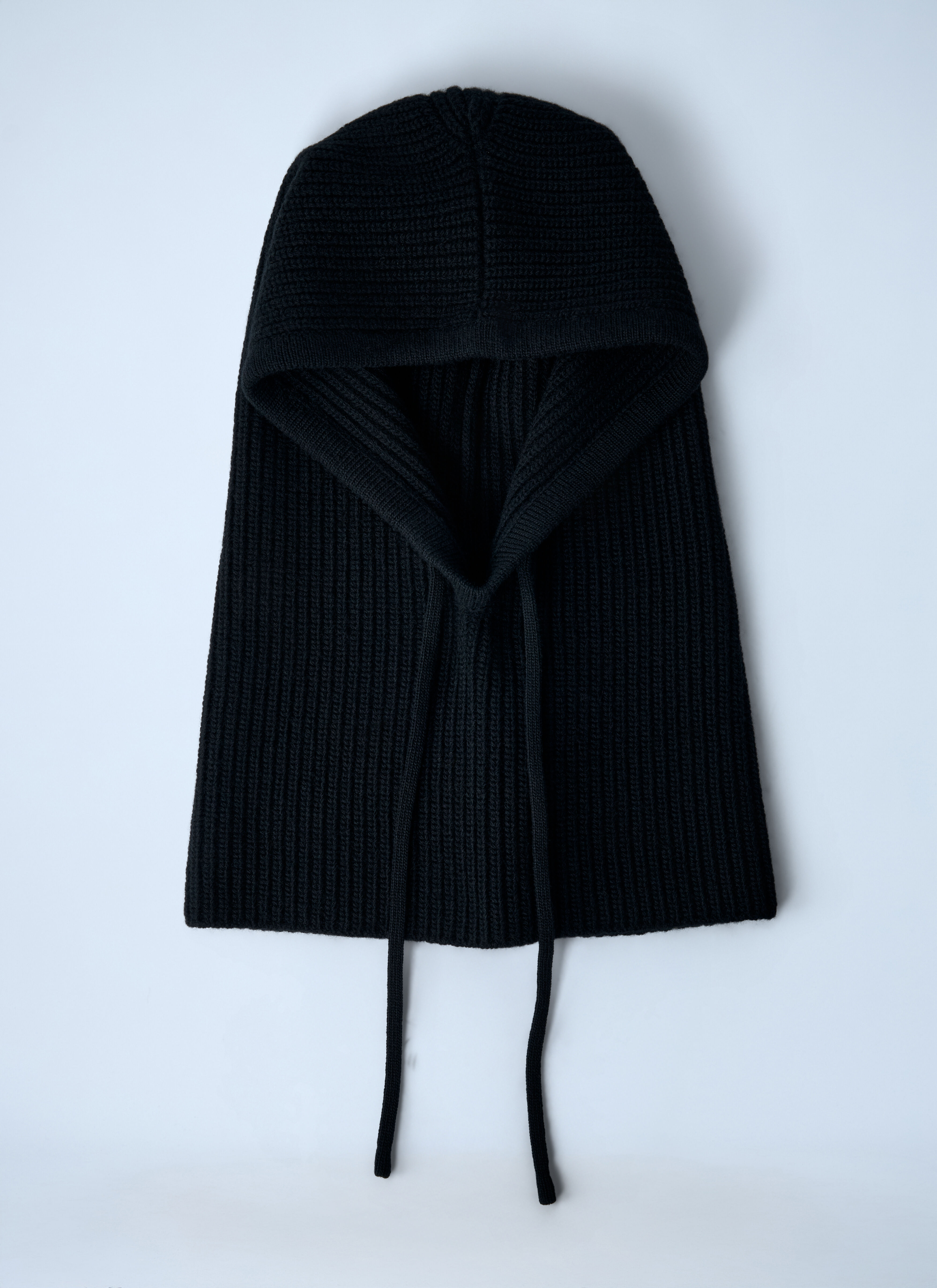 Logo plaque balaclava in wool-and-cashmere-blend knit. - Round crown - Rear logo plaque - 70% Wool, 30% Cashmere - Color: Black - Code: 1HC470 2DZL F0002