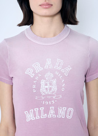 Cotton T-shirt with front logo print. - Crewneck - Short sleeves - Front logo print - Rear logo motif - Rib trims - 100% Cotton. Machine wash cold - Color: Purple - Code: 3557B 16XS F0203