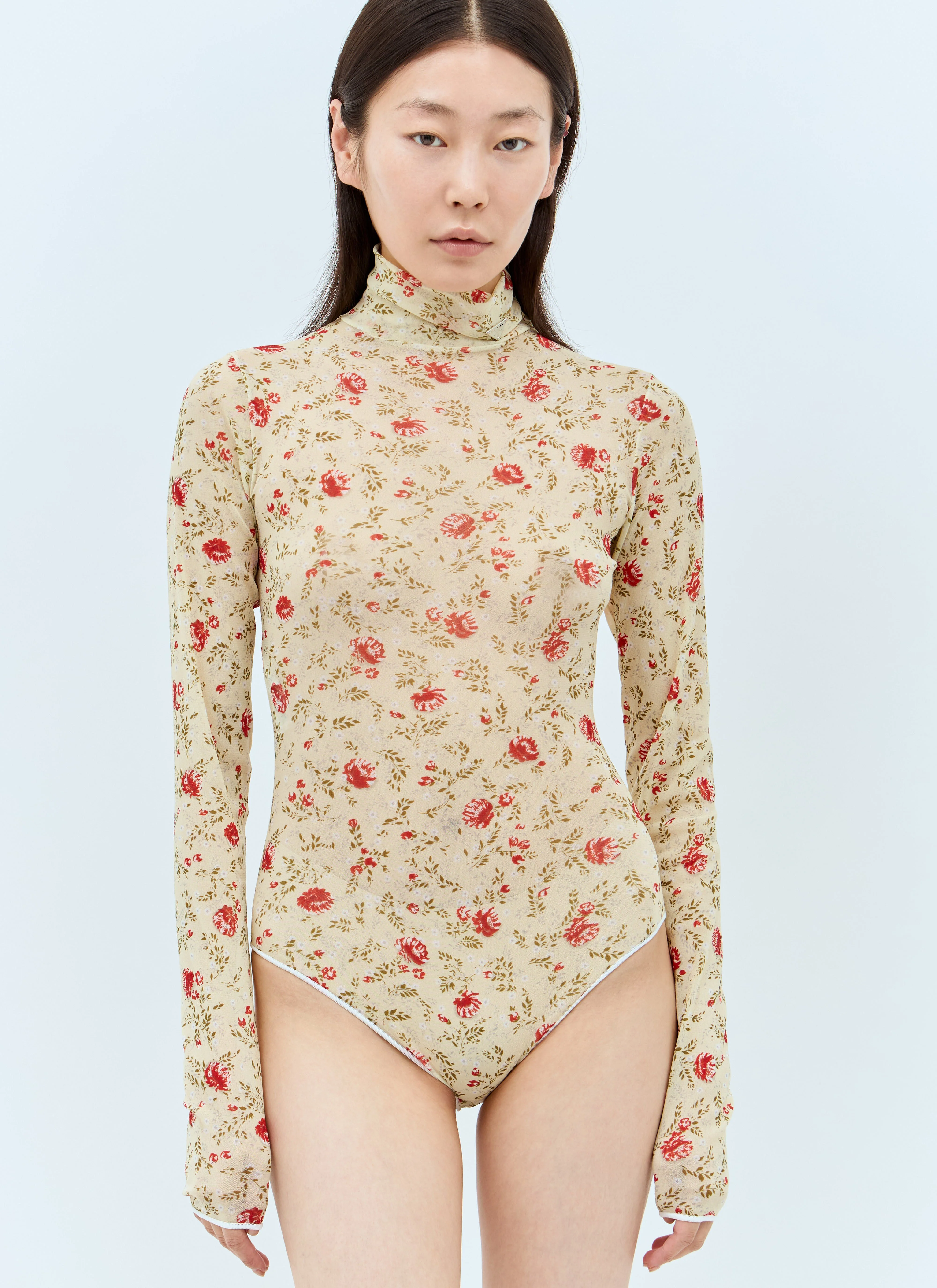Printed bodysuit in stretch tulle. - High neck with logo plaque - Long sleeves - Bottom-snap fastening - Flower print - Semi sheer - 100% Polyamide. Hand wash - Color: Cream - Code: 32157 14ZK F0011