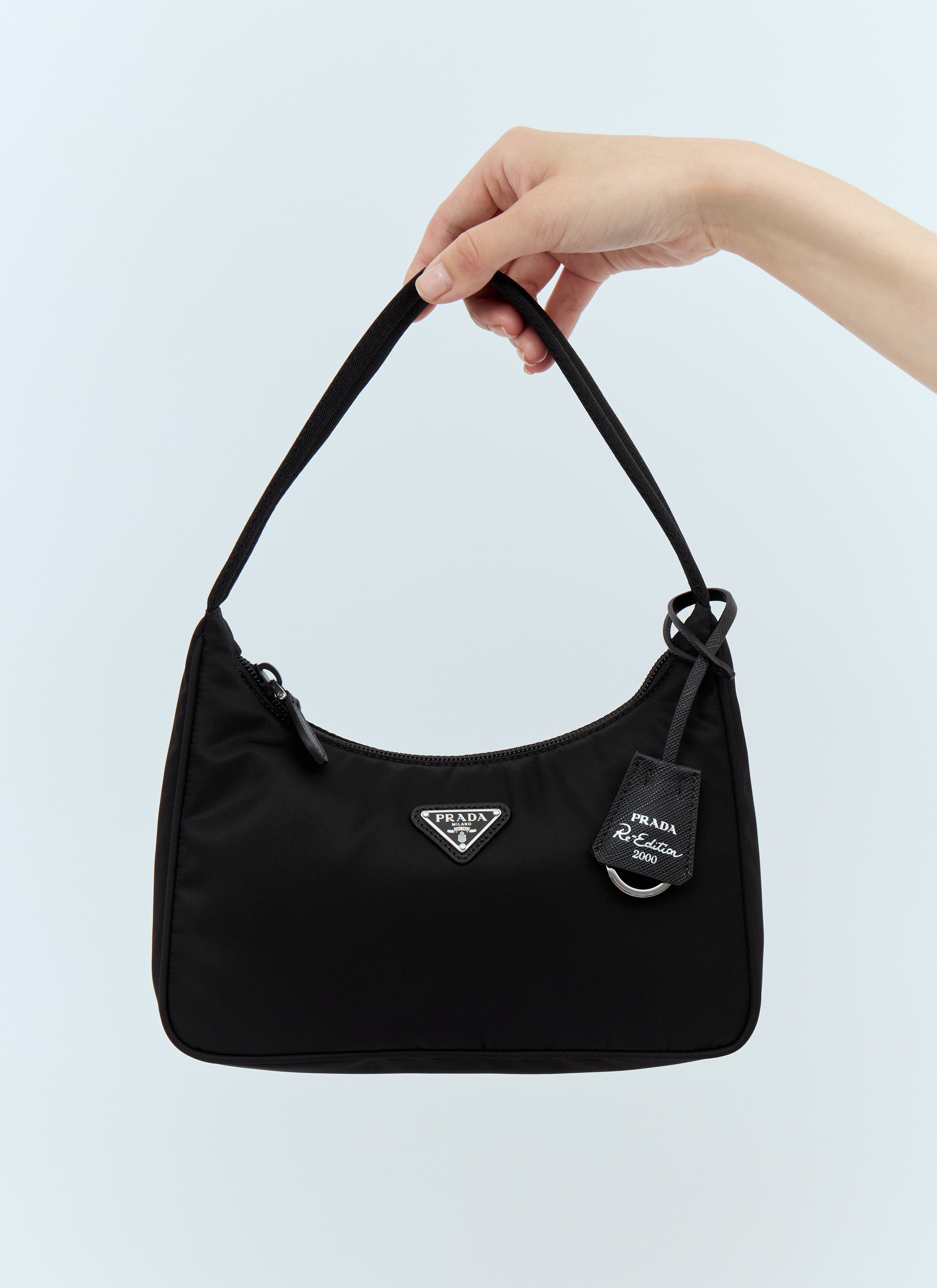 Re-Edition 2000 mini shoulder bag in recycled polyamide. - Shoulder strap - Top zip fastening - Detachable encased keyring - Front logo plaque - One main compartment - Made in Italy - 100% Recycled Nylon - Color: Black - Code: 1NE515 RDH0 F0002