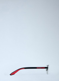 Semi-rimless glasses with metal frame and adjustable nose pads. - Rectangular lens shape - Adjustable nose pads - Metal frame construction - 100% Metal - Color: Black - Code: 0PS 51SV 1AB1O1 54