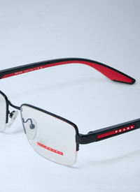 Semi-rimless glasses with metal frame and adjustable nose pads. - Rectangular lens shape - Adjustable nose pads - Metal frame construction - 100% Metal - Color: Black - Code: 0PS 51SV 1AB1O1 54