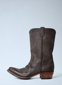 Leather in a slight dressed finish. - Curved pointed toe - Side pull tabs - Block heel - Panel construction - 100% Leather - Color: Brown - Code: 2WE002 MJ0 F0038