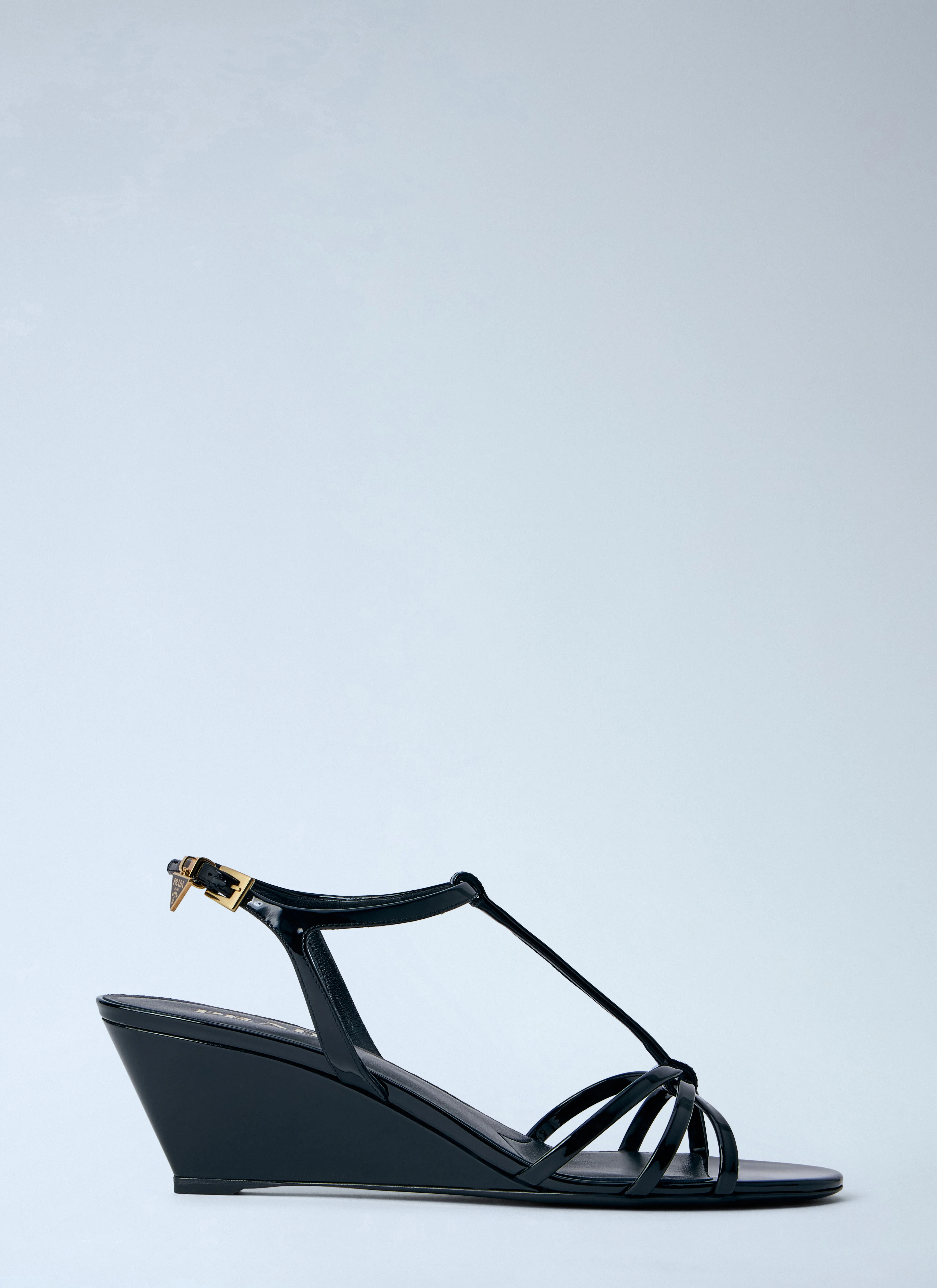 Wedge sandals with strappy upper and buckle fastening. - Open toe - Adjustable buckle fastening - Wedge heel - 100% Leather - Color: Black - Code: 1X383O 069 F0002