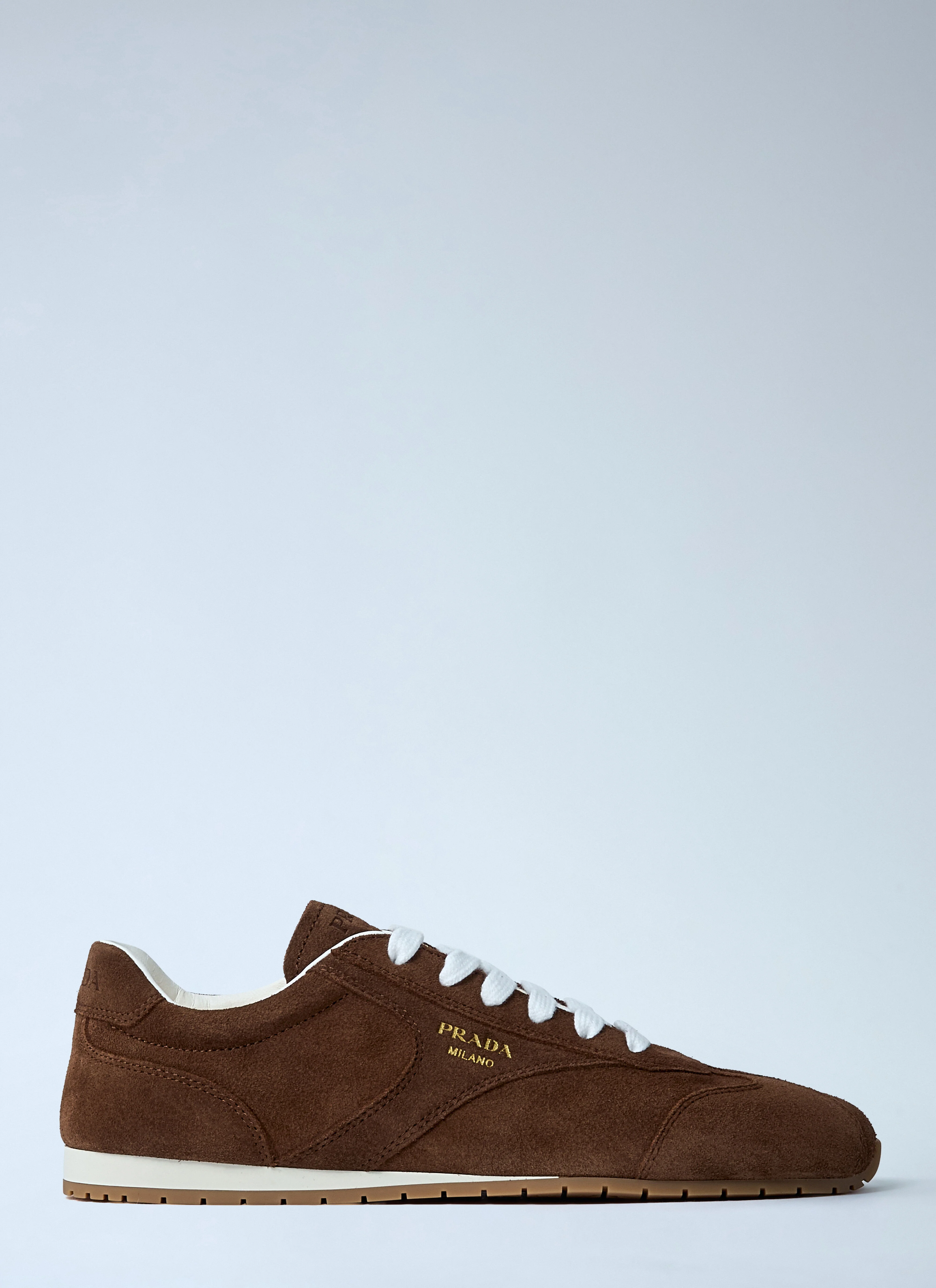 Low-top sneakers in suede finish. - Round toe - Lace-up fastening - Logo patch at tongue - Logo motif at side - Contrast sole - 100% Leather - Color: Brown - Code: 1E152O 054 F0324