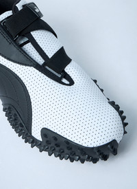 Mostro sneakers in leather with perforated finish. - Round toe - Hook-andd-loop fastening straps - Logo patch at tongue - Signature Formstrip at side - Raised logo silhouette at rear - Panel construction - Spiked midsole - 100% Leather - Color: White - Code: 397331 01