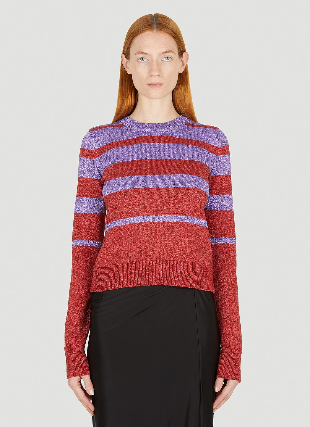 - Technical blend fabrication in a metallic knit weave - Crewneck - Long sleeves - All-over striped motif - Ribbed trims - 35% Metal, 34% Polyamide, 31% Cotton. Machine wash cold - Color: Red - Code: 23SMPU174ML0212 M508
