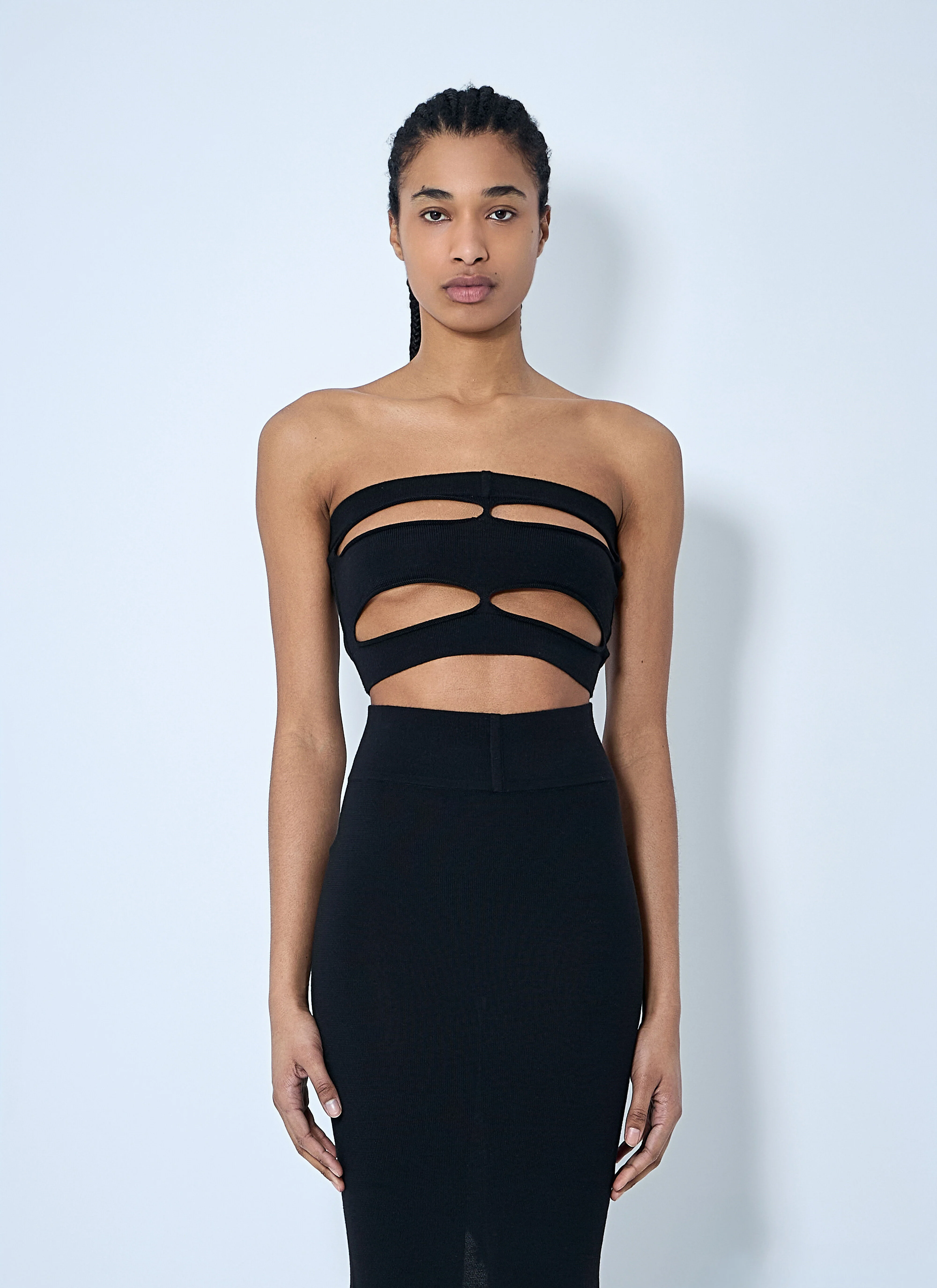 Distressed bustier in wool knit. - Bandeau neckline - Cut-out construction - Straight hem - 100% Wool. Hand wash - Color: Black - Code: RO01E7647 KGRIDM 09