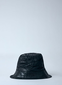 Coated bucket hat with self-tie fastening. - Flat crown - Dropped brim - 100% Cotton - Color: Black - Code: DA01E3479 PF 09