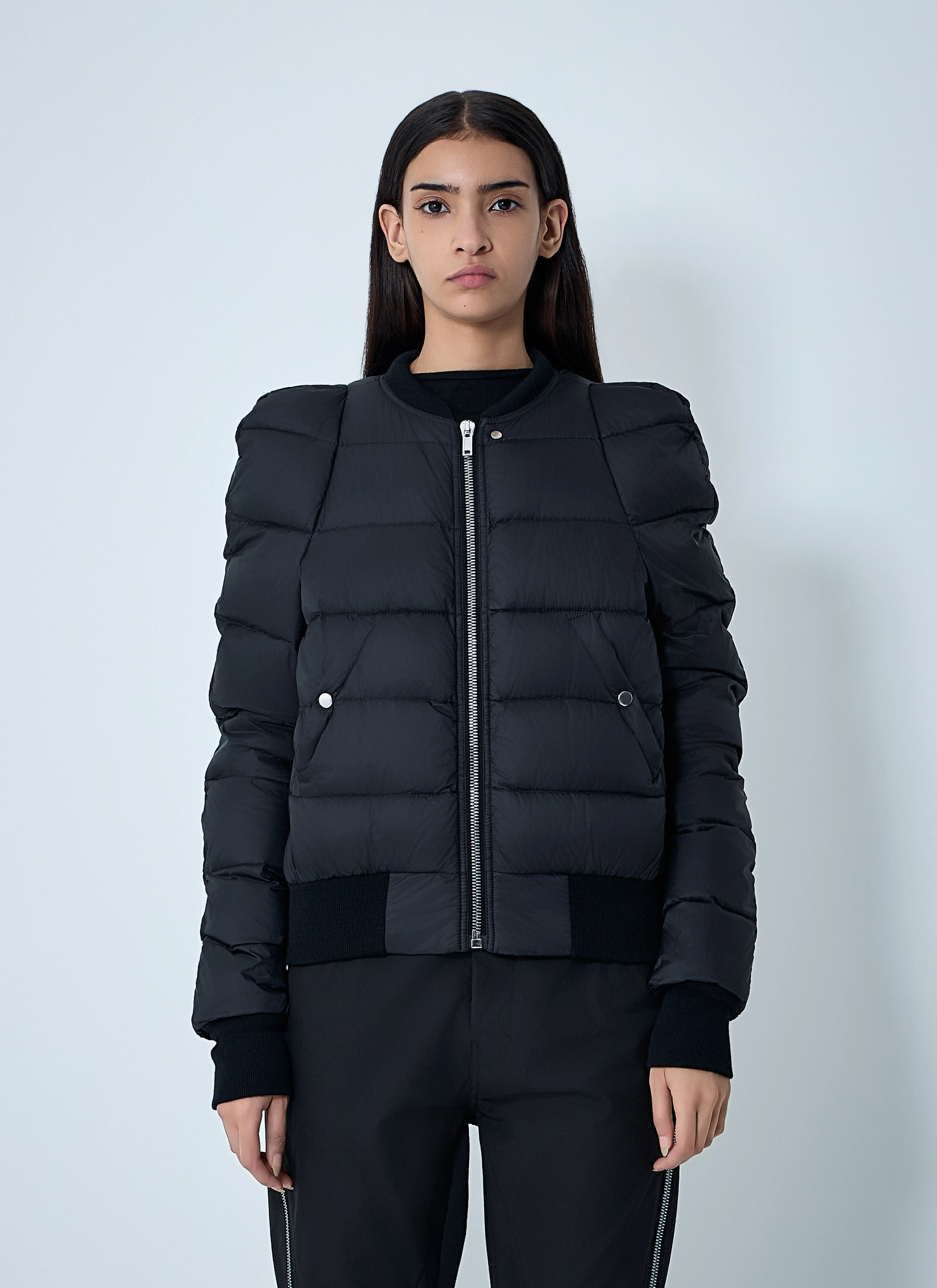 Duvet bomber coat with knitted trims. - Crewneck - Front zip fastening - Long sleeves - Multiple pockets - 100% Nylon. Dry clean - Color: Black - Code: RP02E4777 NPD1 09
