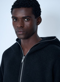 Wool-fleece zip-up sweatshirt. - Hood - Front zip fastening - Long sleeves - Split kangaroo pocket at front - Ribbed trims - 68% Wool, 30% Nylon, 2% Elastane. Hand wash - Color: Black - Code: RR02E1687 KWP 09