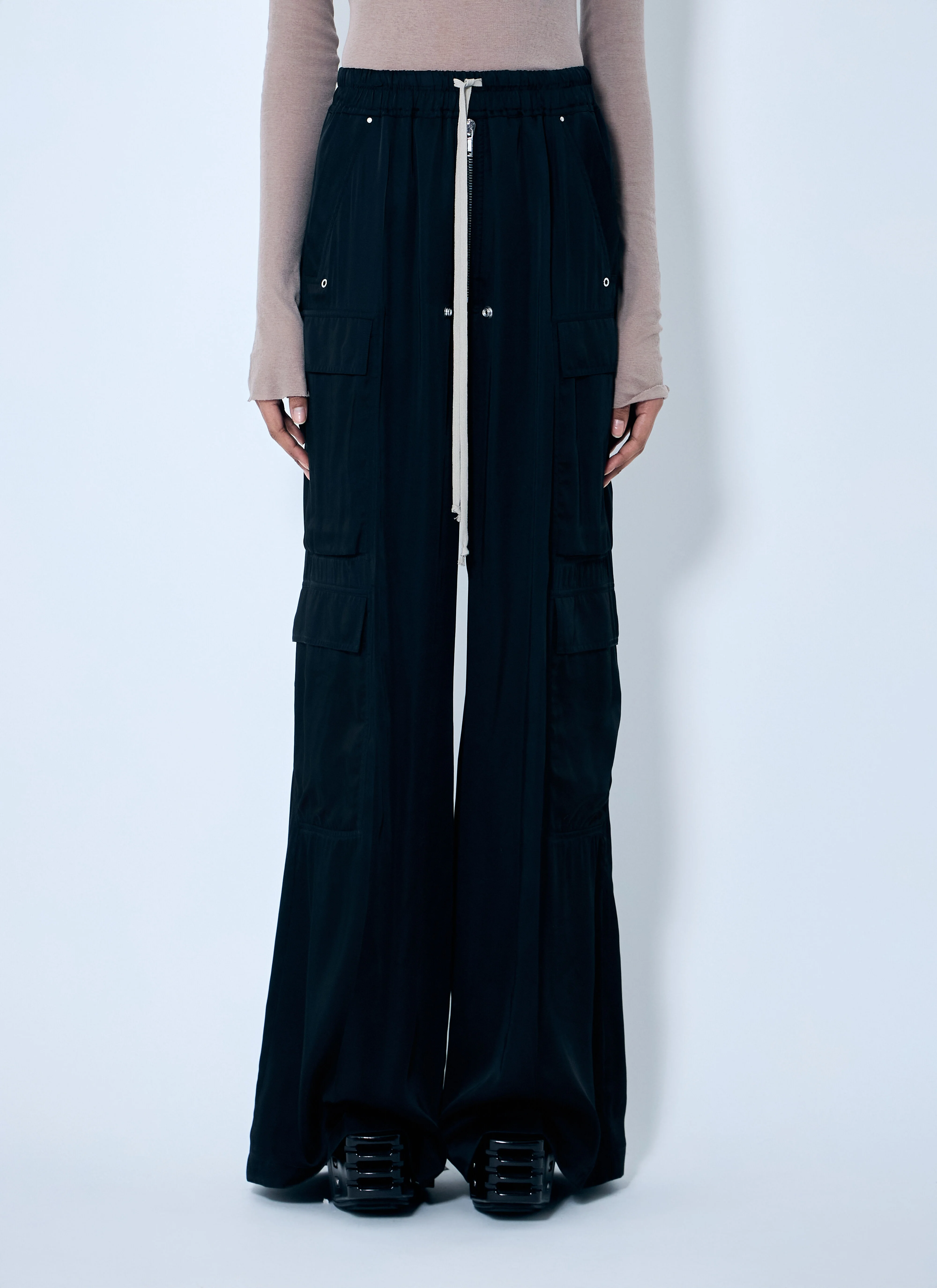 Cargo pants in satin weave. - Mid rise - Elasticated waistband with drawstring - Front zip fastening - Multiple pockets - Made in Italy - 61% Acetate, 39% Viscose. Dry clean - Color: Black - Code: RP01E7327 SCH 09