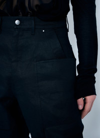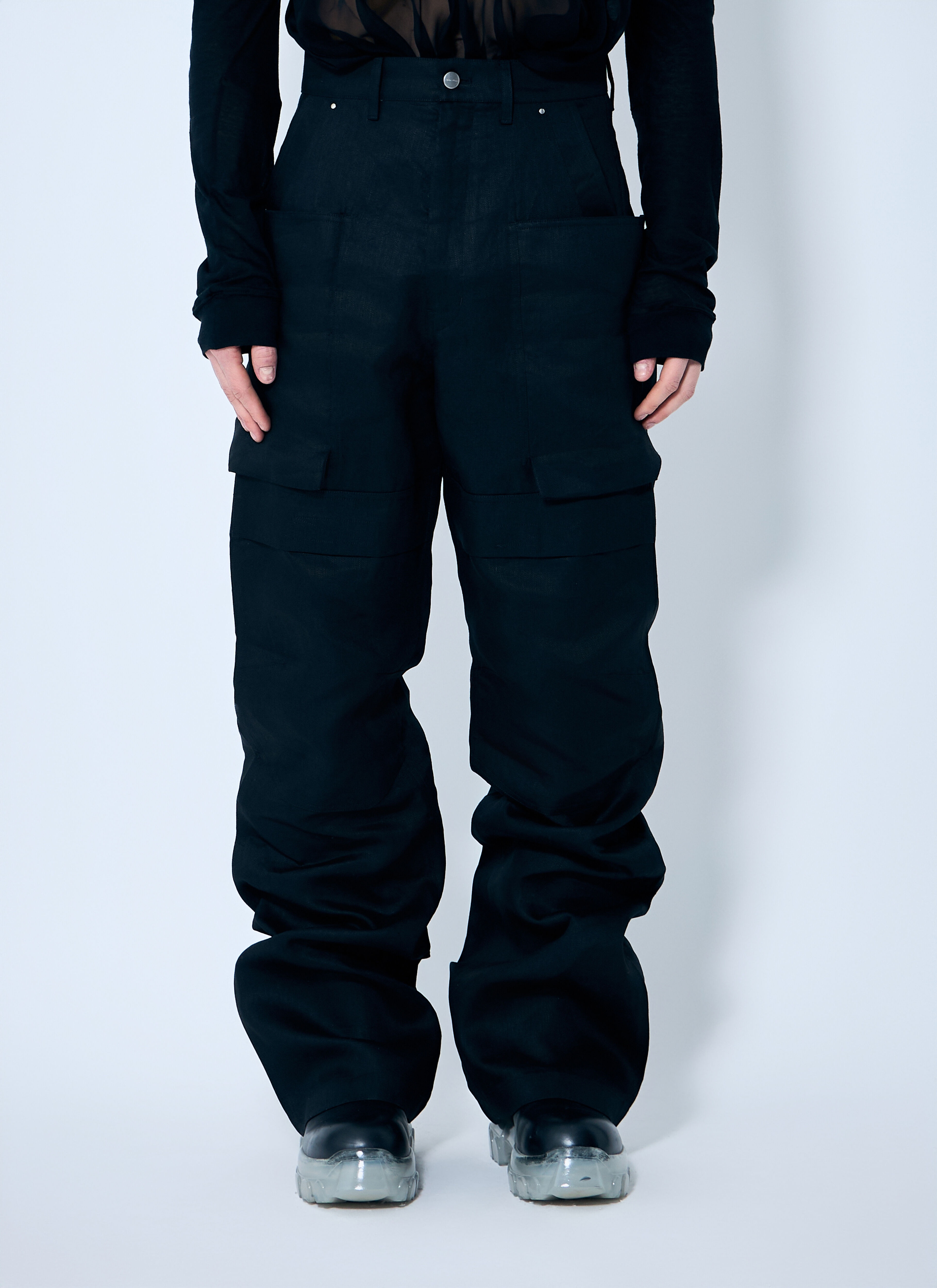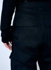 Structured cargo pants. - Mid rise - Top-snap-button and zip-fly fastening - Belt loops - Multiple pockets - Made in Italy - 100% Linen. Dry clean - Color: Black - Code: RU01E5346 TWL 09