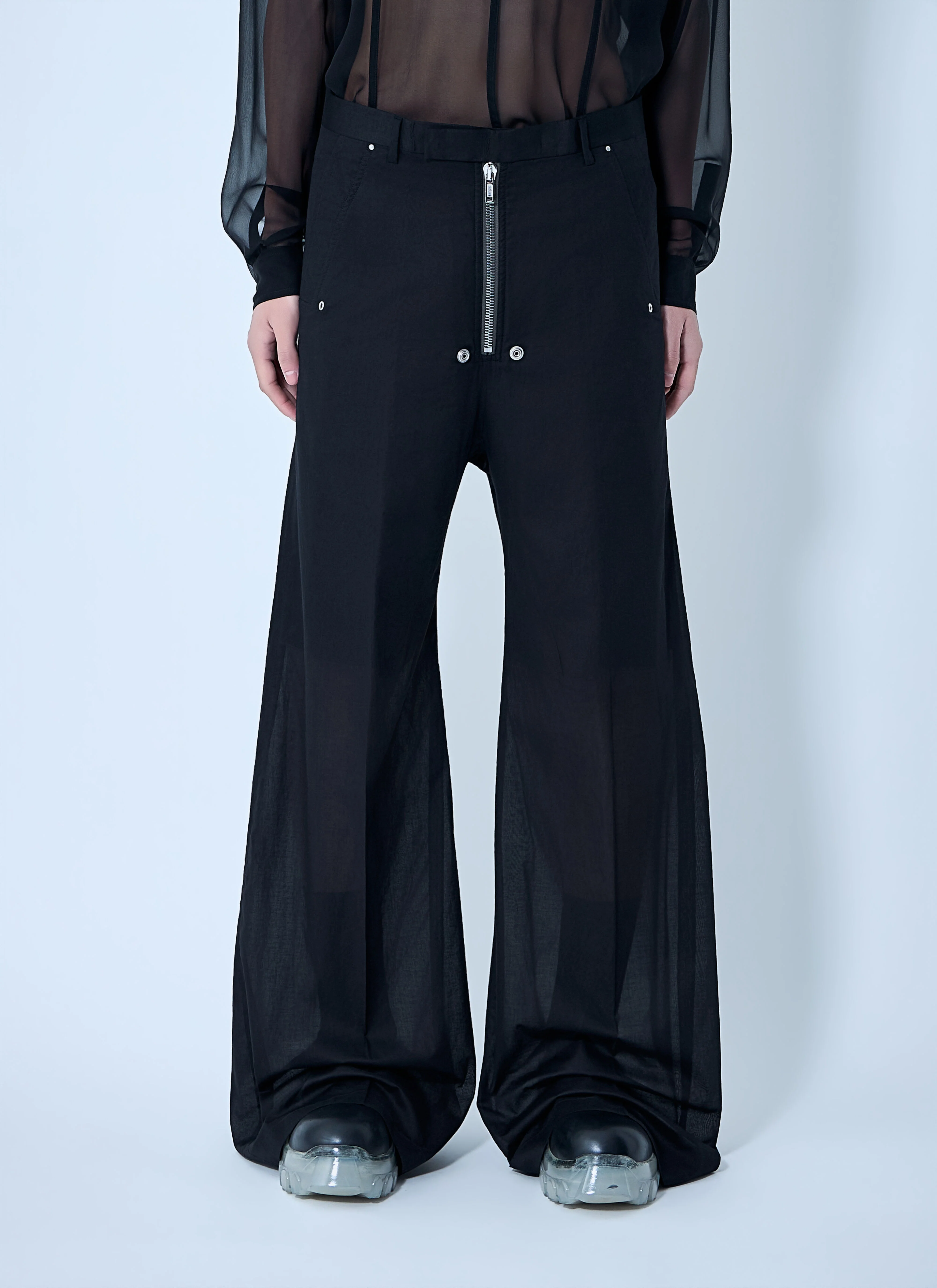 Wide-leg trousers in sheer fabric with zip-front fastening. - Mid rise - Zip-front fastening - Belt loops - Sheer fabric - 100% Cotton - Color: Black - Code: RU01F2354 CV 09