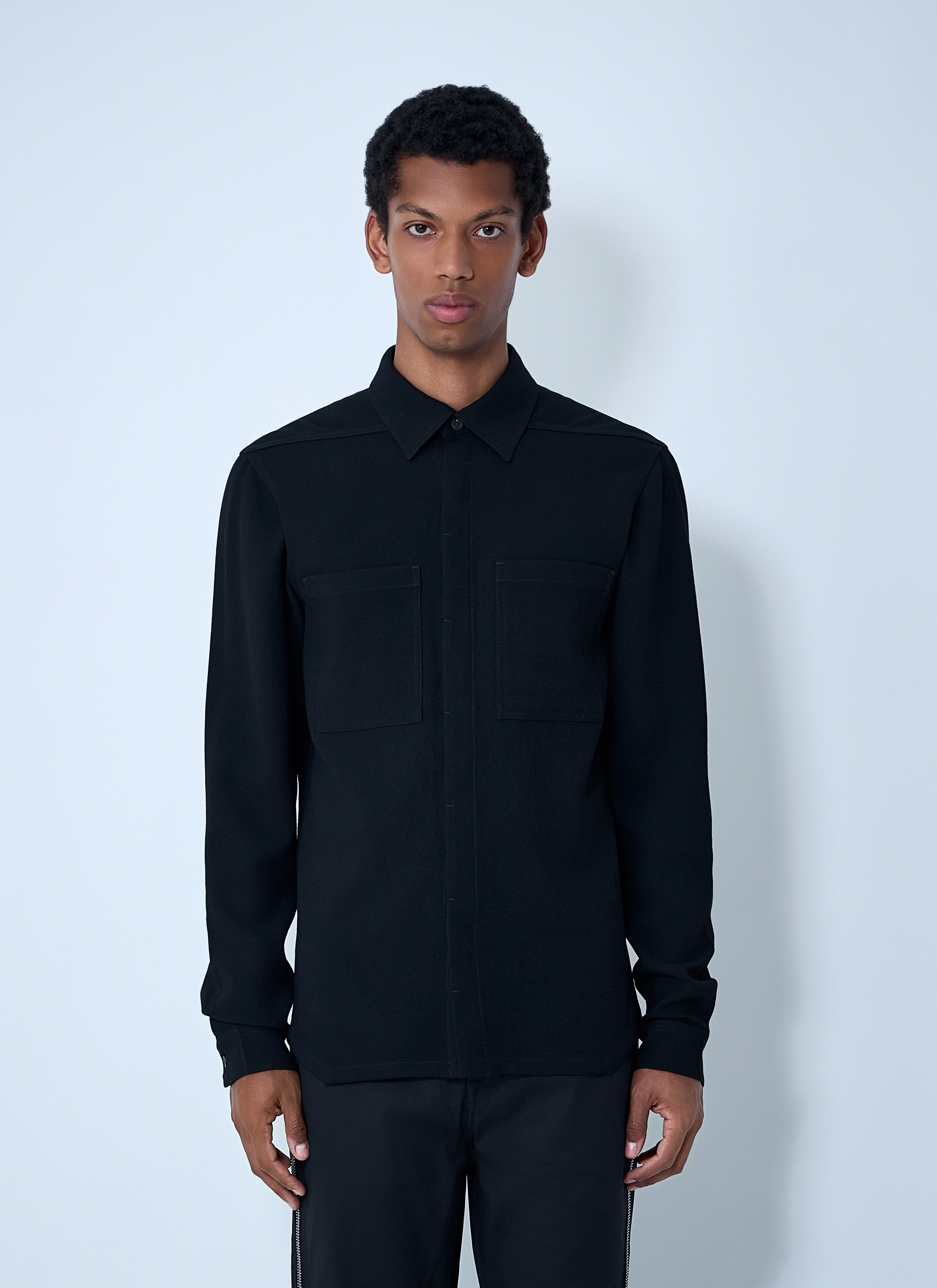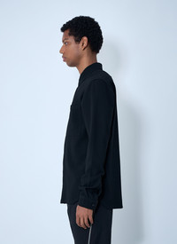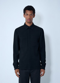 Button-down shirt in wool weave. - Classic collar - Front button fastening - Long sleeves - Chest flap pockets - Button-fastening cuffs - 100% Wool. Dry clean - Color: Black - Code: RU02E1292 WA 09